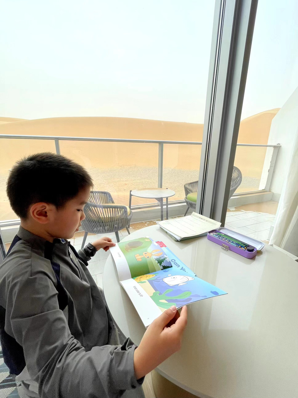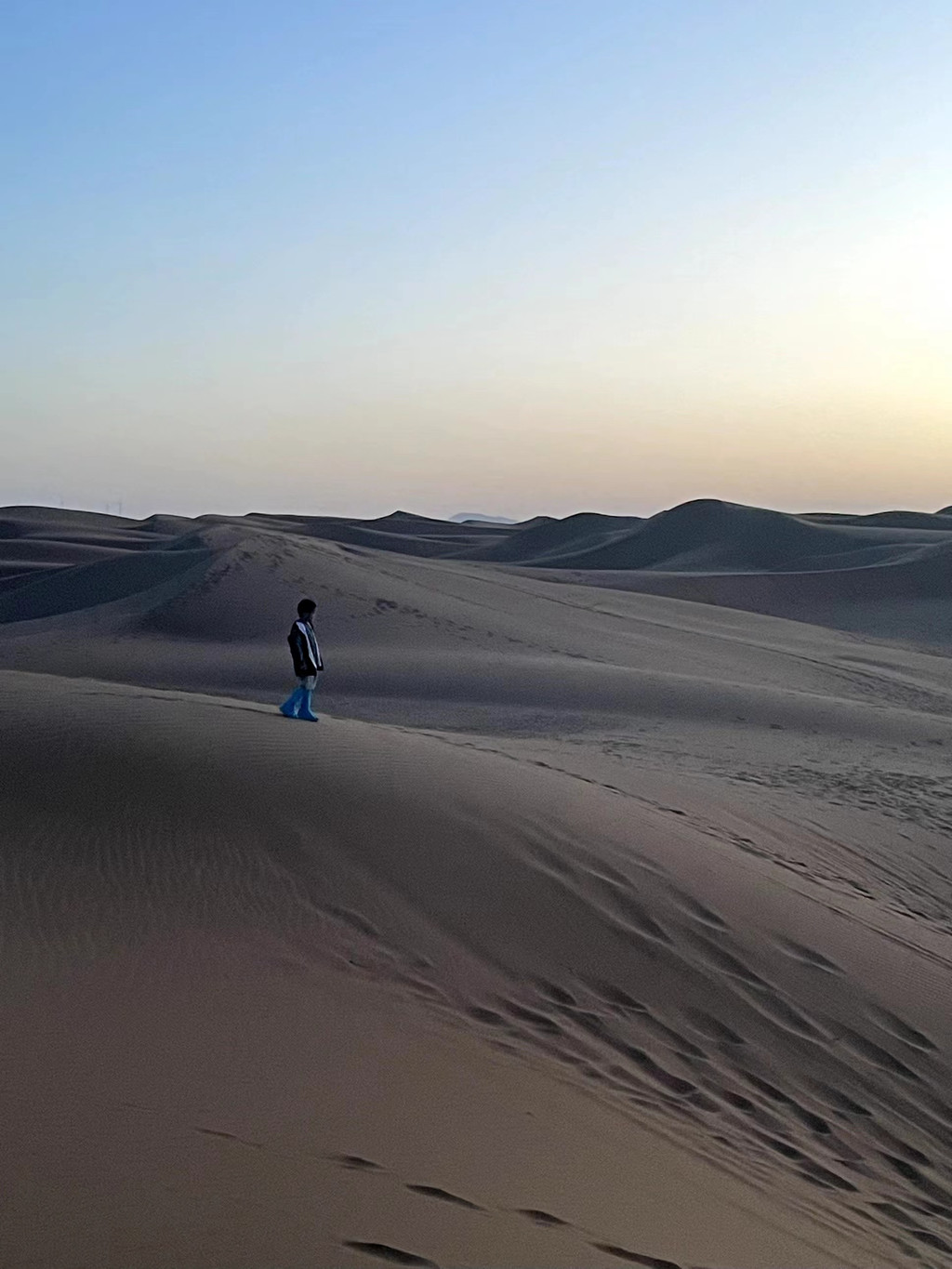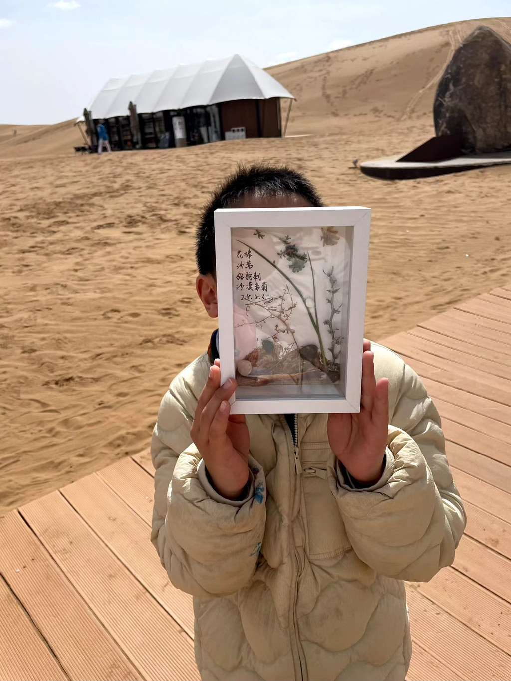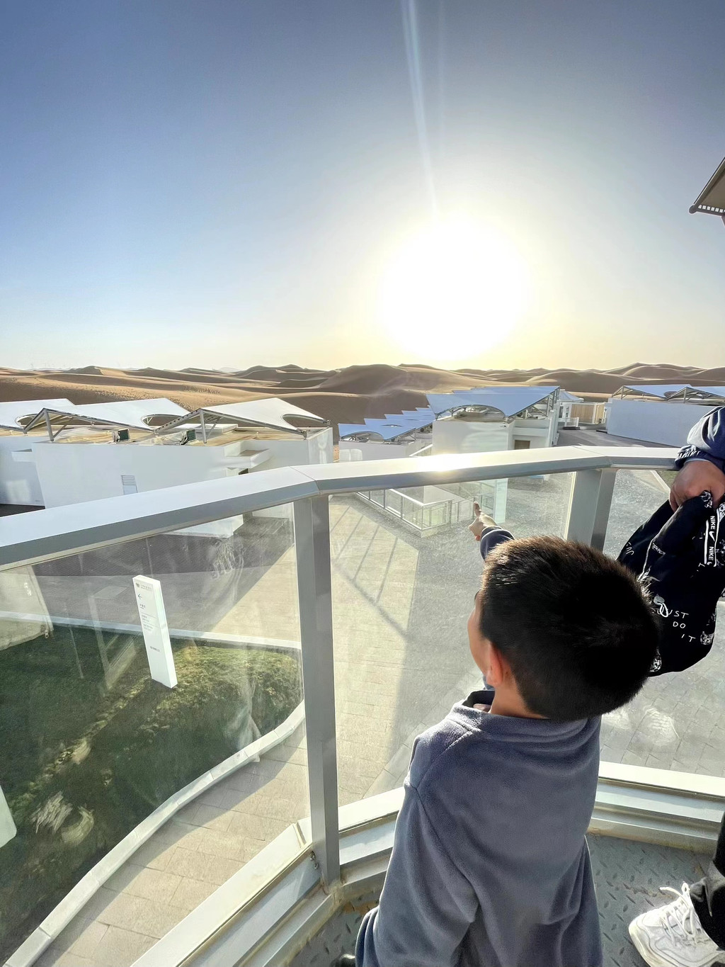 DAY5:一早上起来,想去看日出的但当天天气云层太厚了。后来选择去了沙漠徒步,看到了正在修建的沙漠钻石酒店,是用来举办沙漠婚礼的。价格超级贵。徒步中儿子捡到很多标本后面进行制作,制作完毕后我们就退房出发去兰州拉。