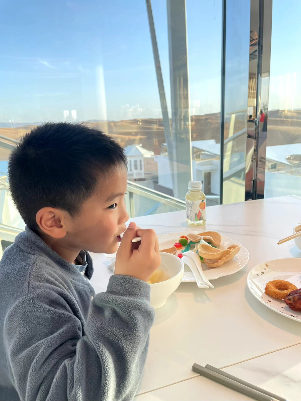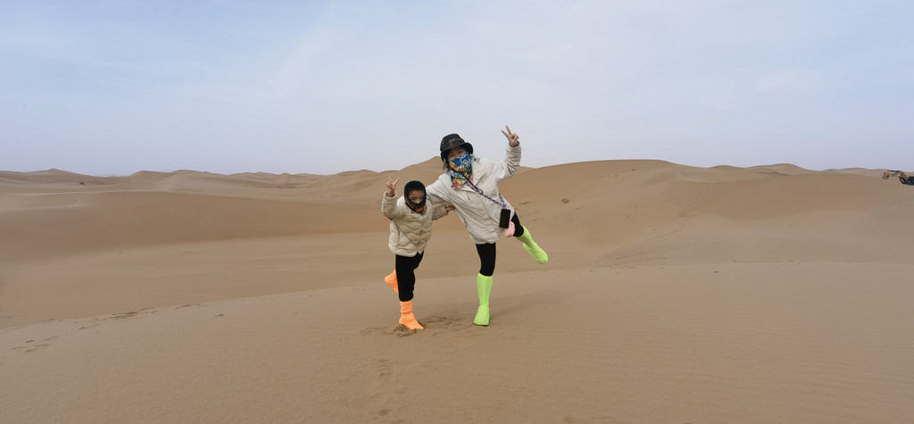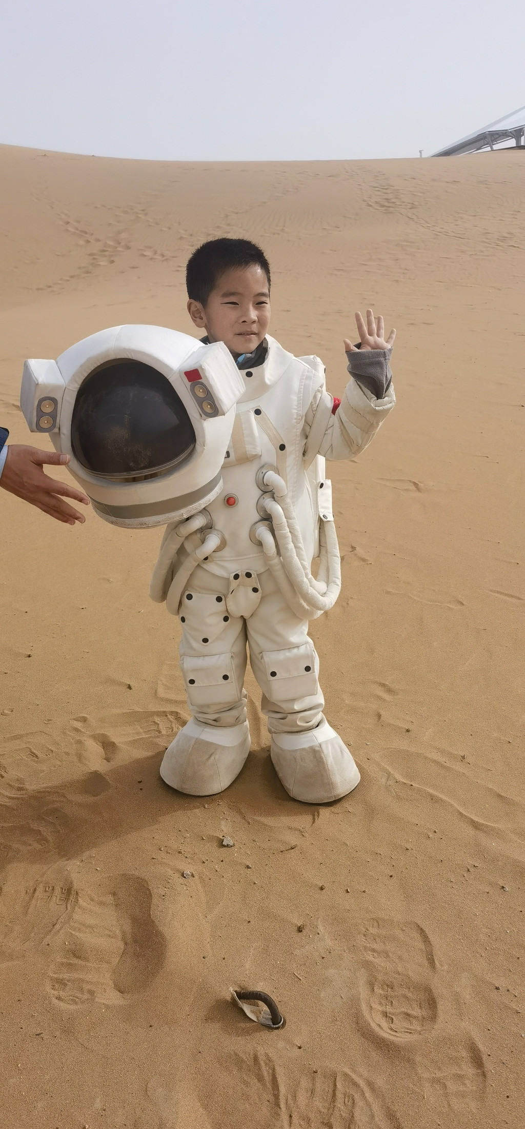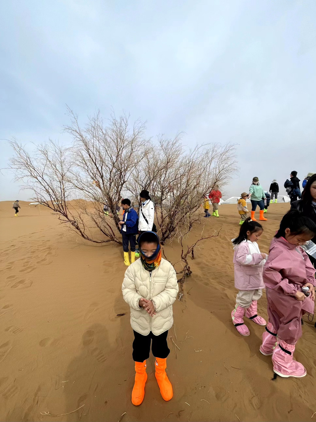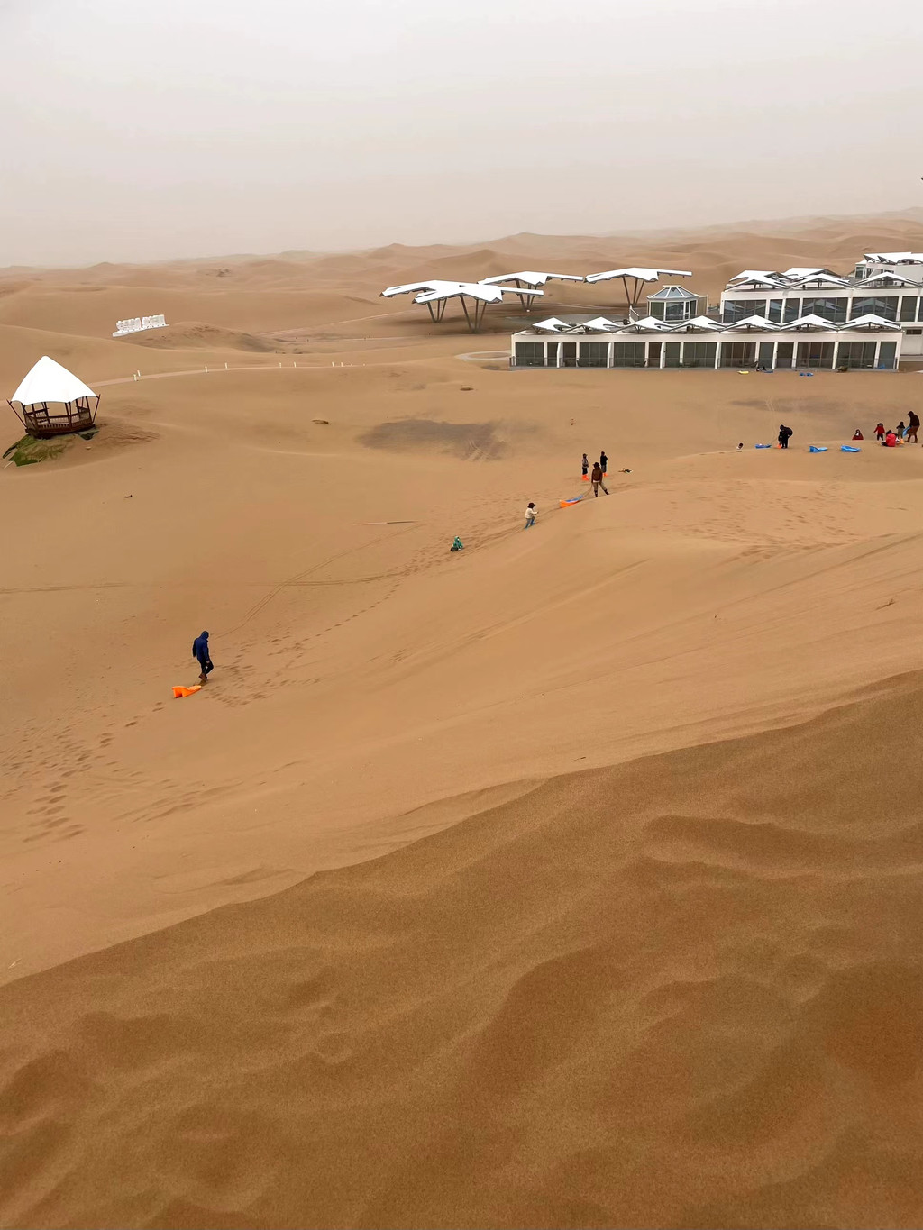 DAY3:遇见了沙尘暴,上午去餐厅吃饭时候风大很。中午过后风小了,就在附近滑沙玩带小孩租太空服拍照。