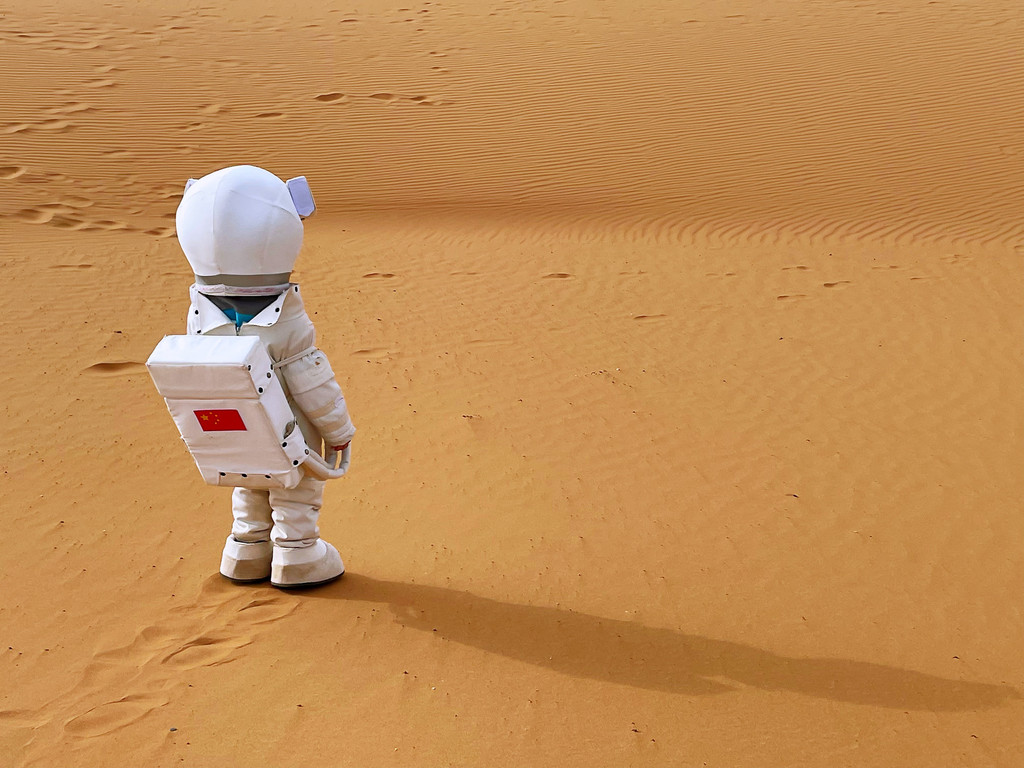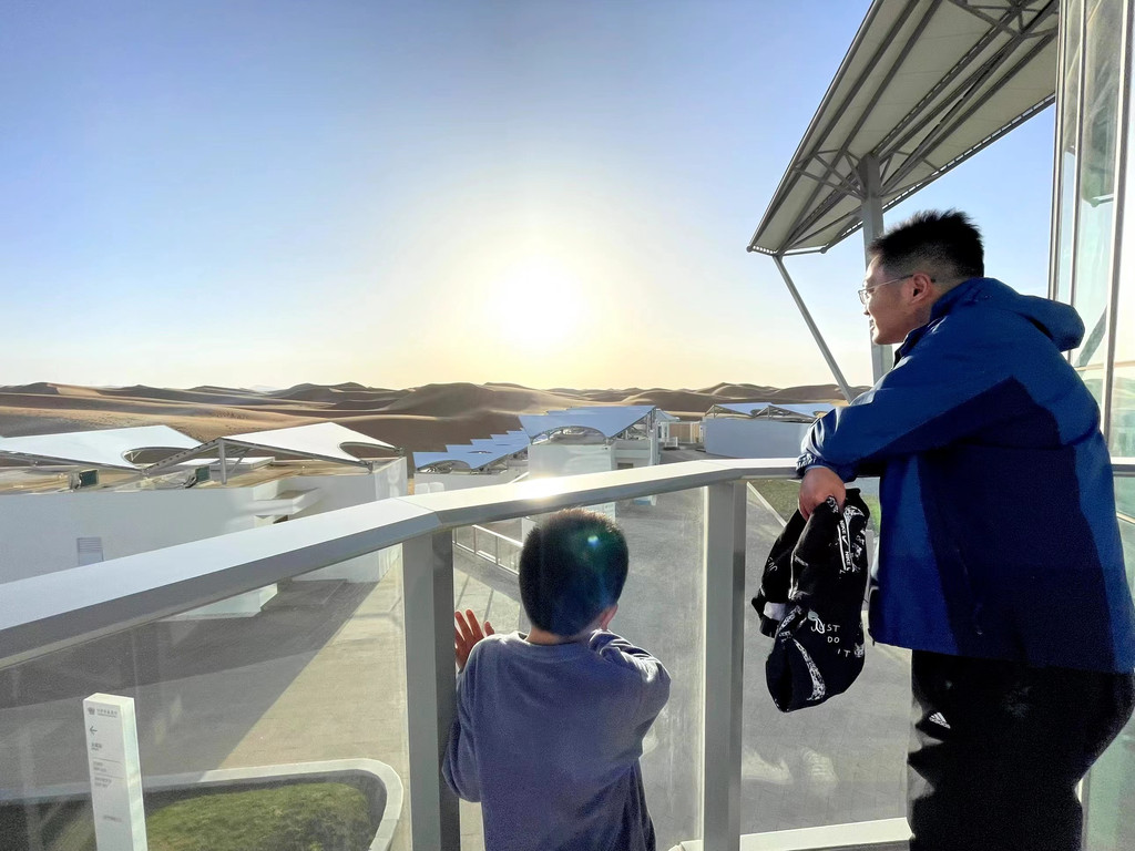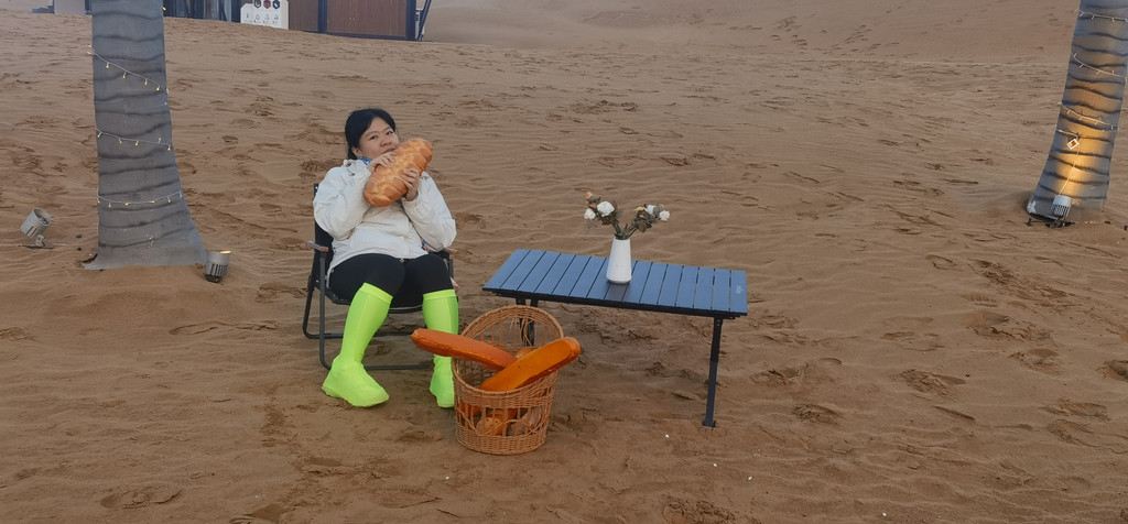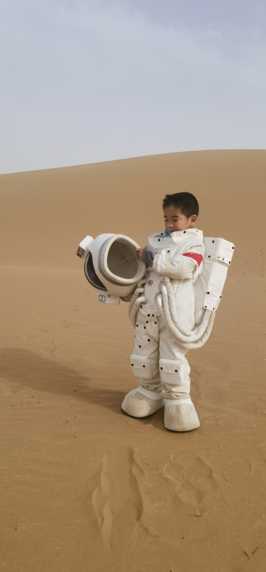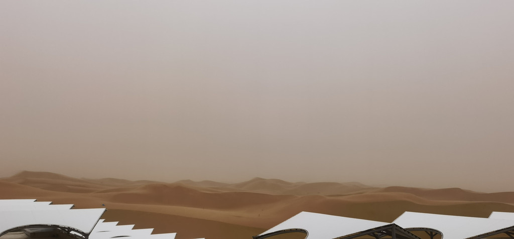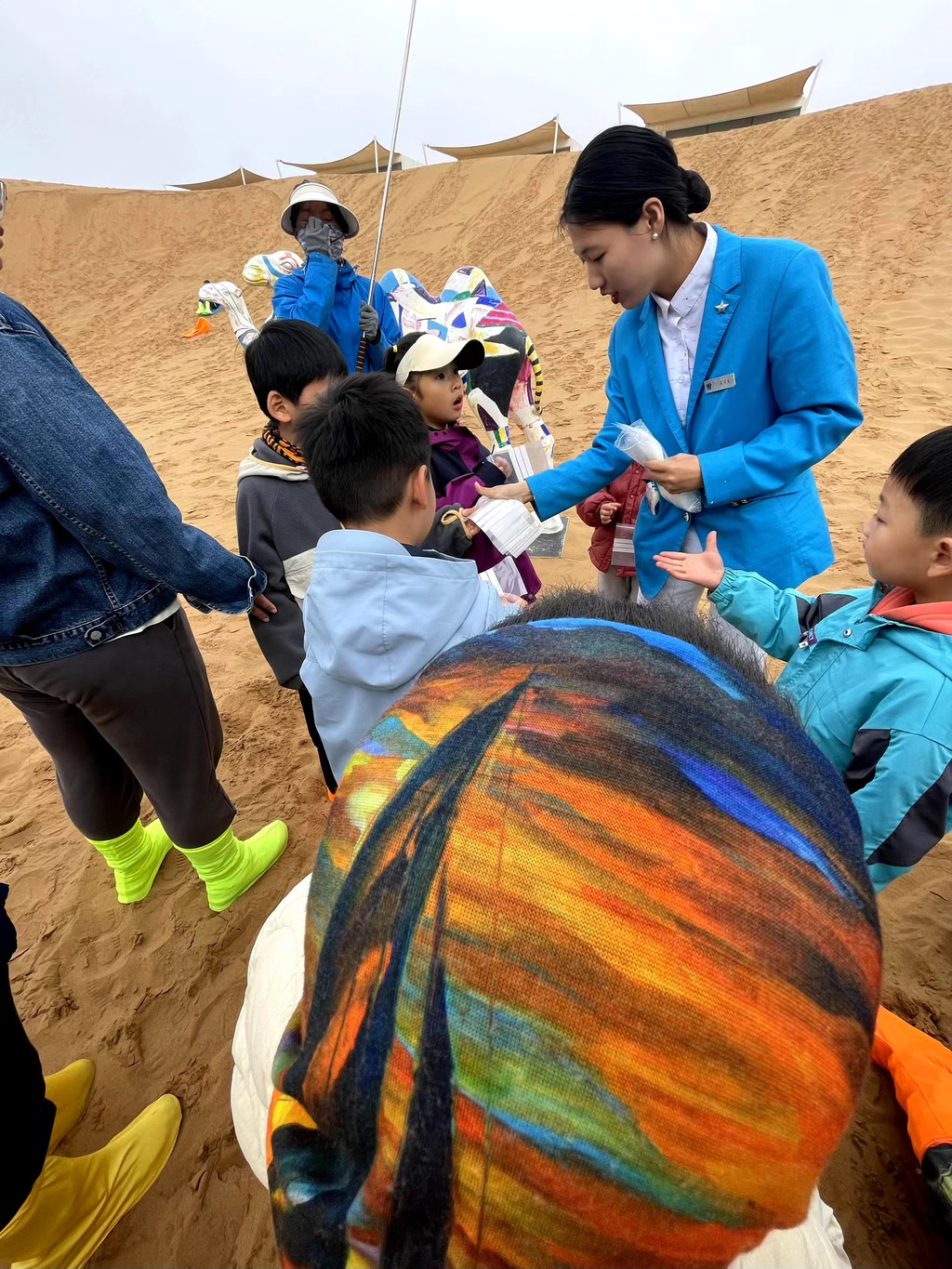 DAY3:遇见了沙尘暴,上午去餐厅吃饭时候风大很。中午过后风小了,就在附近滑沙玩带小孩租太空服拍照。