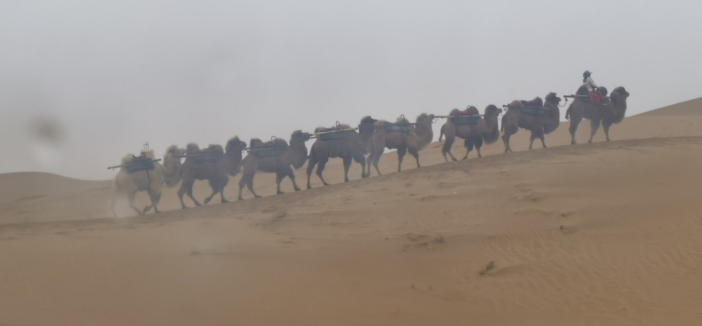 DAY4:今天厉害了,遇见了沙漠中难得的下雨天。上午风小了很多,出发区沙坡头的沙漠区,坐骆驼,坐沙漠冲浪车买的299套票。但中午忽然下雨了,骆驼都下班了。原本想明天上午再去黄河区,然后去把没用的项目退掉了。谁知道没过多久天气好了,又去黄河区滑沙,坐了羊皮筏子,他们两个去了玻璃栈道。看着黄河区快下班了,坐了缆车到班车点。酒店住户景区内班车和电瓶车都可以免费坐,只是项目需要另外收钱。羊皮筏子的师傅还会唱山歌,沙坡头景区的滑沙是要钱的,还不如再酒店附近找个小沙坡爬上去滑沙,酒店内有免费的滑沙板。