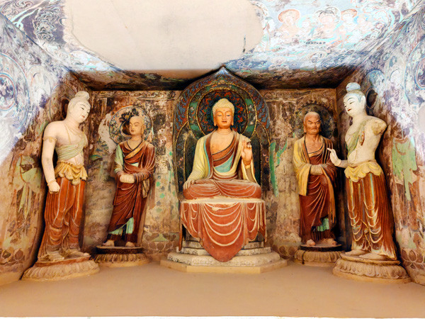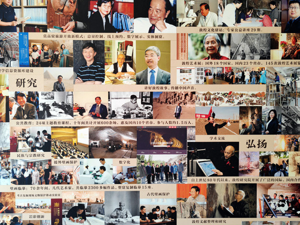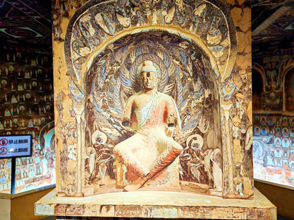 墙角边印着莫高窟窟区的全景照片,让人们对莫高窟的整体风貌有了初步的认识。每一处细节都经过精心设计,营造出了一种庄重而又神秘的氛围。