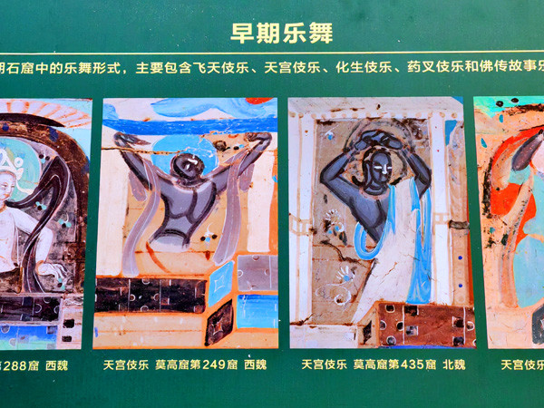 “妙音乐舞”展区通过多媒体展示和实物展示相结合的方式,让我感受到了敦煌音乐和舞蹈的魅力。壁画中的乐师们手持各种乐器,演奏着美妙的音乐;舞者们身姿轻盈,翩翩起舞。那灵动的舞姿和悠扬的乐声,令人陶醉其中。