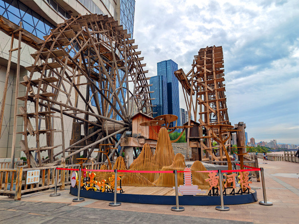 在博览园的一角,有一处展示水车制作工艺的区域。在这里可以看到了工匠们精心打造水车的过程,他们专注的神情和娴熟的技艺让我敬佩不已。