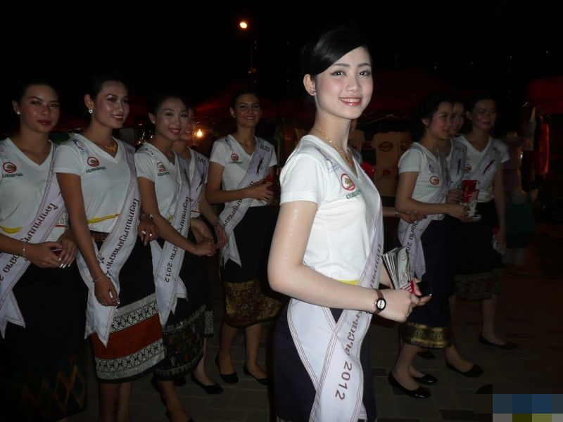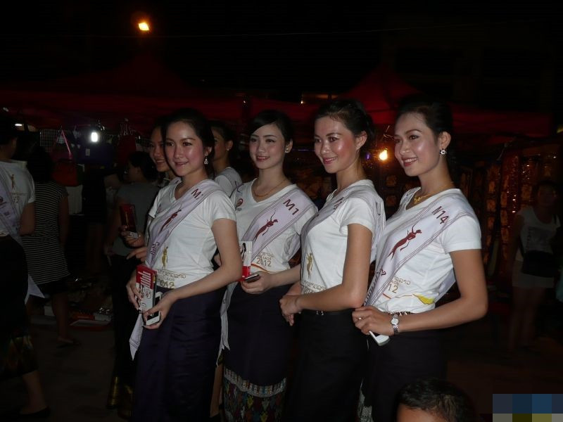 在湄公河全景公园偶遇2012年老挝小姐选美大赛进入前20名的佳丽,M1号小姐送给我一本介绍她们20人的宣传资料供我投票参考。可惜这资料是老挝文, 除了能看懂每位选手的芳龄,其他情况一概不知道,我怎么去投票呢?哈哈!