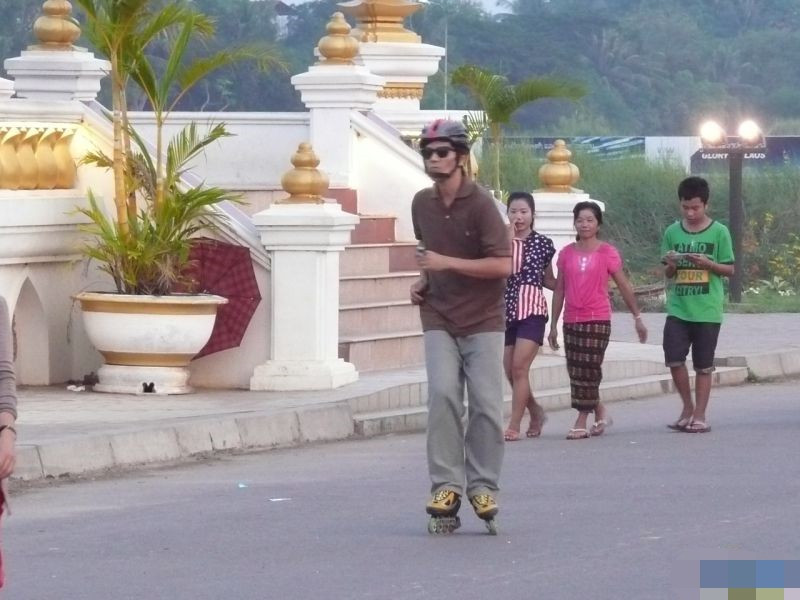 我住的MixOK Guest House离媚公河隔一条街,清晨和黄昏的湄公河边,似乎全城的人都来这里锻炼身体,有骑车的、轮滑的、跑步的、打羽毛球的、练健美操的等等。所以,这里的医院很冷清,不象北京,医院总是门庭若市。湄公河边非常适合轮滑,没有机动车,早晨很凉快。在这里滑个湄公河轮滑马拉松肯定很过瘾。