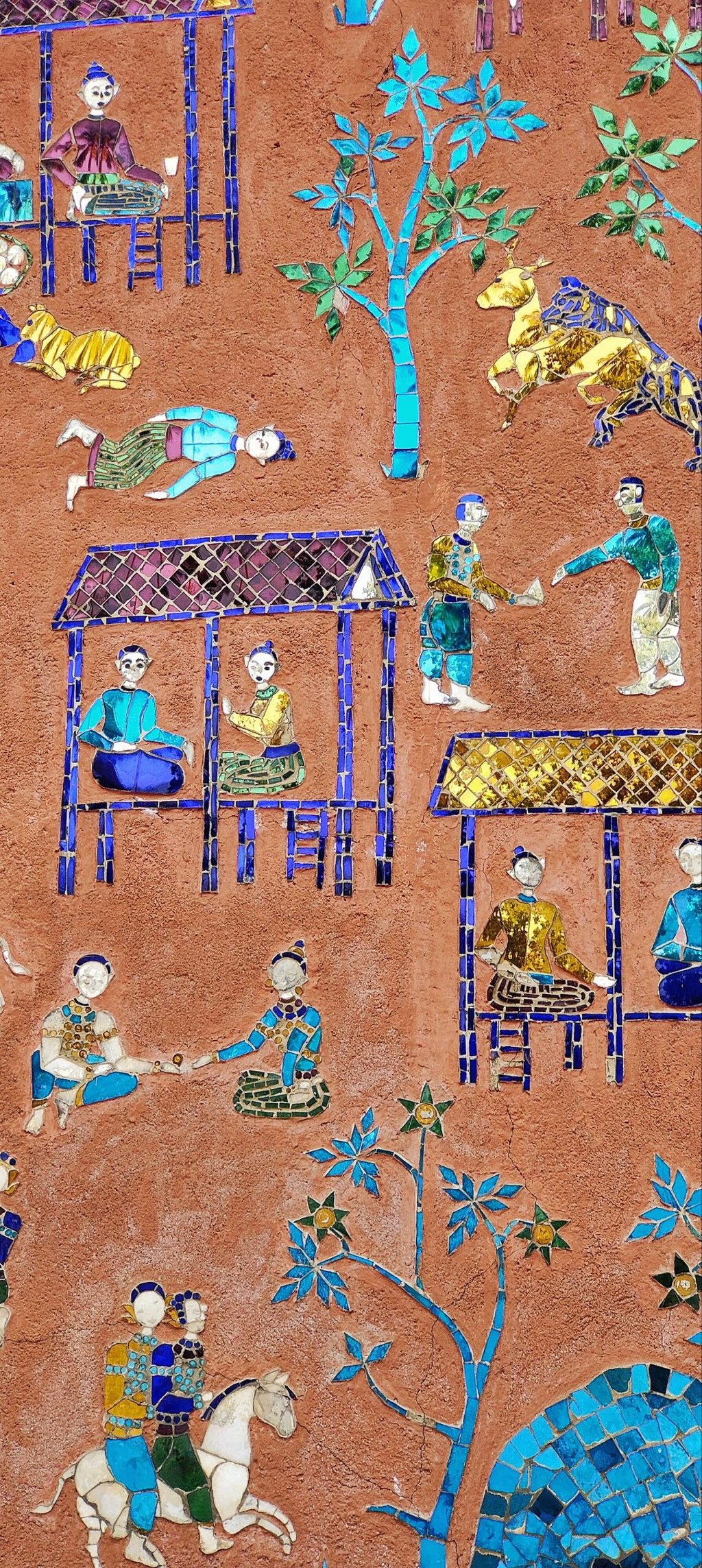 这里没有像九寨黄山那样俊秀绮丽的自然风光,景色十分平常,但却是一座极具佛教与殖民特色的小城。城内分布有大大小小的寺庙,著名的香通寺便坐落于此。香通寺不愧是东南亚最精美的寺庙之一,规模不大,却以大量用宝石(各色玻璃)和黄金镶嵌的华丽壁画和精美的佛教建筑闻名于世。壁画“生命之树”在阳光的照耀下熠熠生辉,过往游客无不驻足凝望。城里至今还保留着很多殖民时期遗留下来的且保护程度很好的法式建筑,在融入了当地建筑风格之后,更显韵味。 琅勃拉邦也因此和独具特色的小乘佛教传统一起被列入联合国教科文组织双遗产名录。