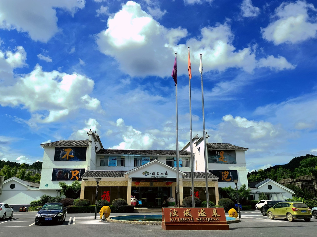 快三点时抵达汝城温泉福泉山庄,知道我们是广州(非疫区)来的后,比较顺利地办了入住。天气太热,在房间休息到5点钟才去泡温泉。这里的温泉出水温度98度,同样含有很多矿物质,也是个有医疗作用的温泉。晚饭就在山庄里吃了,吃过晚饭走出山庄大门到街上,发现原来满街都是饭店。