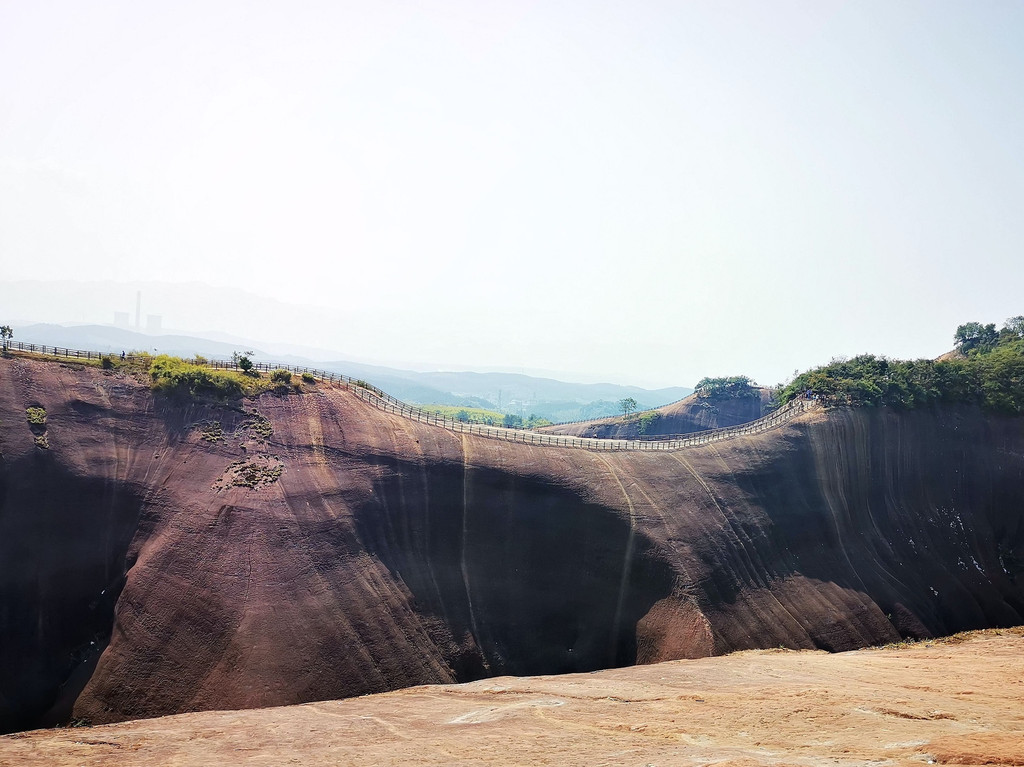 大约一小时的车程去到高椅岭主景区的最高处的停车场,停好车还要步行一段路才进入主景区。高椅岭风景区位于湖南省郴州市苏仙区桥口镇与资兴市交界处,是一块尚未开发的丹霞地貌处女地,其最大的特点就是丹霞地貌周边有漂亮的水洼点缀,红岩绿水、险寨奇涧,生态自然,美得一塌糊涂。高椅岭属原生态丹霞景区,是一个赏之叫绝、百走不厌的户外休闲摄影胜地。景区虽然进行了一些基本建设,但是由于没有收门票,所以没有管理,好几个口可以进到景区,景区到处垃圾。