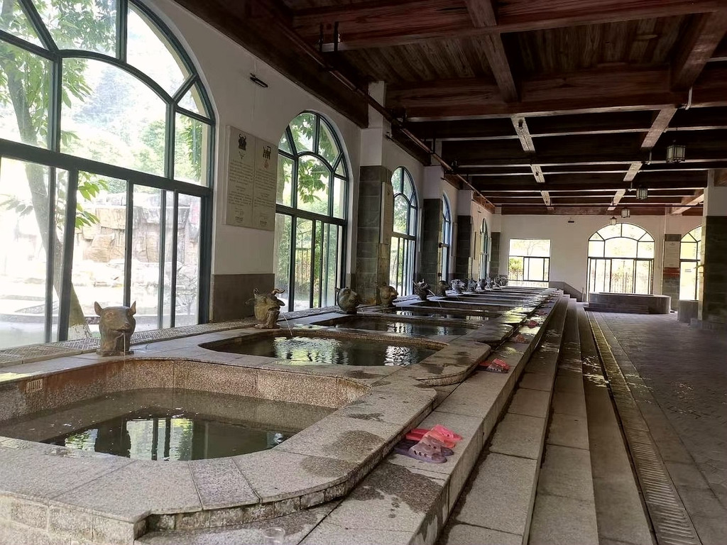酒店的自助早餐很丰富,温泉要9点以后才开放,吃过早餐就到酒店后面天禅谷景区游览,一路风景不错,空气清新。上面还有个十二生肖广场,在广场中央发声有很强的回音。我们沿着山路一直往前走,山上植被丰富,景色怡人。我们绕了整个山头一大圈,谓之圆满。出来之后继续泡温泉直至中午退房。