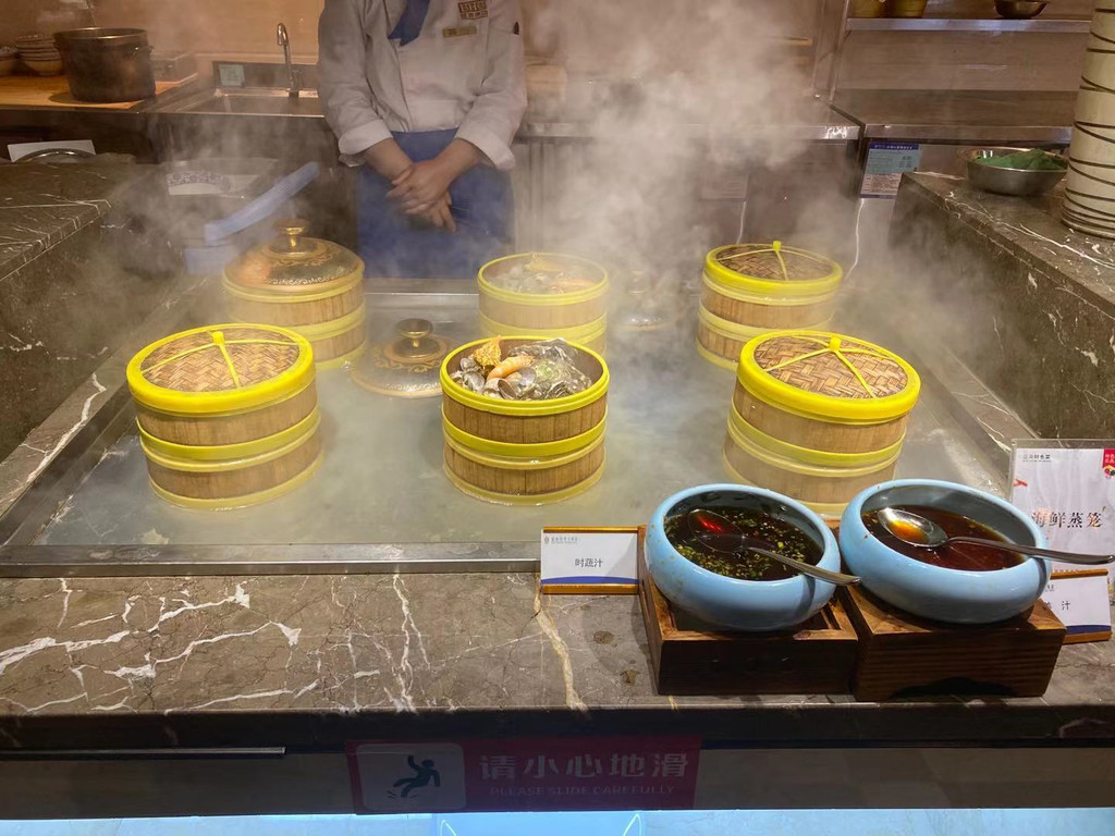 丰富的菜品 各色各样让人欲罢不能的感觉,肚子已经满满的但是嘴却不听使唤的想将所有的商品都品尝一下。对于肉食主义者的我来说最喜欢的就是烤鸭、牛排和一些生吃商品,各位小伙伴有机会一定来品尝一下 真心推荐给大家。下次再回来依旧会选择蓝海。