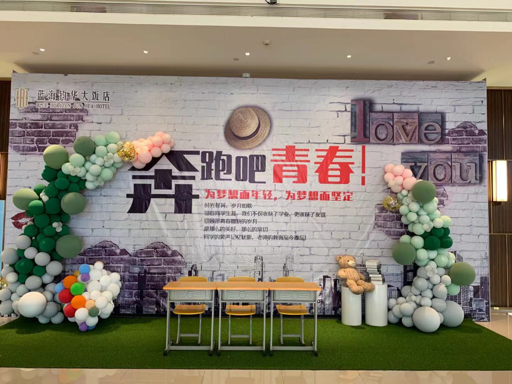 我自驾来到这个酒店,一眼望去停车场还真宽敞,我满心欢喜的把车停好,准备去酒店前台办入住,进入大堂,映入眼帘的是一座大彩虹门,上面有“我们毕业啦”五个大字,写出毕业生的心声。