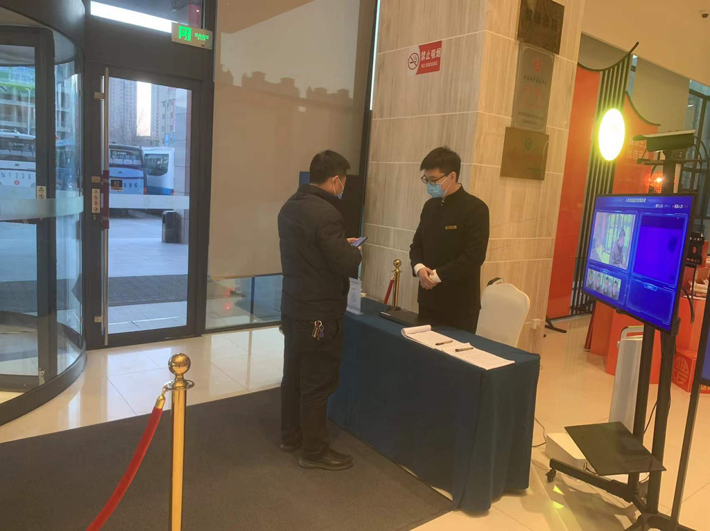 前台热情好客的接待。对待防疫要求也不懈怠,“两看一测”登记拍照留存。也会尽职尽责的做好本职工作,告知早餐时间及地点、房间信息等等,在我心中对他们的服务真是暂不决口。