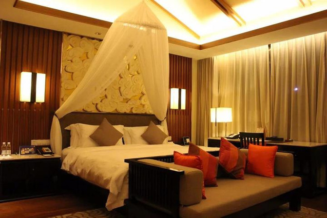 如果不需要麻将房, 还可以选择升级至豪华温泉双卧别墅,这里就变成一间私密的小客房,有单人床和双人床可选,全家出游、二孩家庭特别合适。