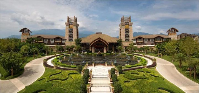 隐于峨眉山脚下的,正是百住不腻的峨眉山蓝光己庄酒店。自驾前往,提醒我们抵达的不是导航,而是满目桃红柳绿。与其说这里是一家酒店,不如说它是一个大花园,园中池水荡漾,三两只黑天鹅正享受着悠闲,岸边桃花朵朵,映得人面也红扑扑的。