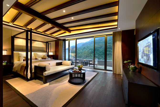 推开房间被房间的景色深深吸引了,房间很大,温馨的灯光,大床睡上去很舒服。阳台外面就是森林,很安静。