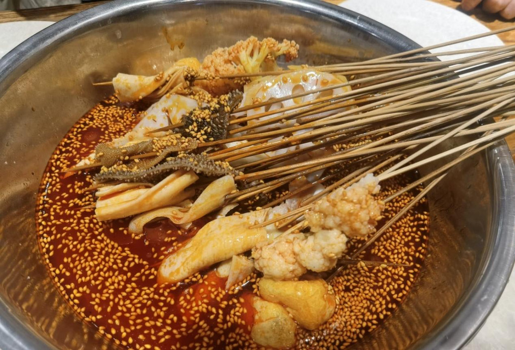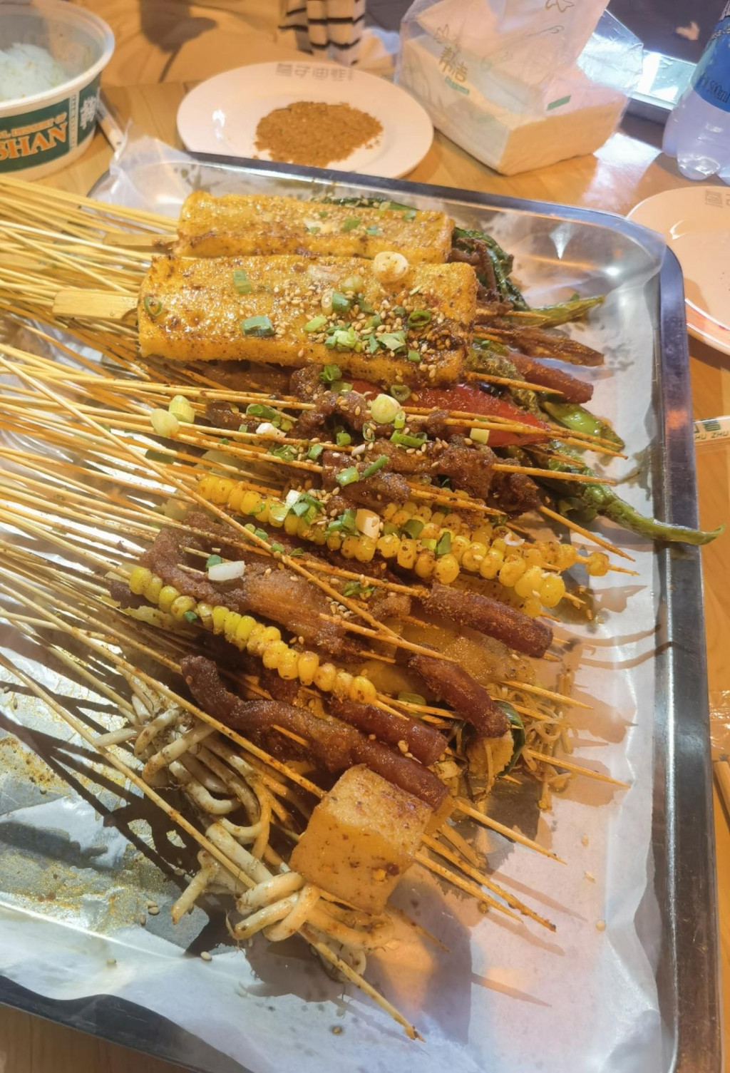 我们去吃了叶婆婆钵钵鸡。这是我们晚上去找的一家饭店。钵钵鸡味道确实不错。其实这里有点类似于成都的马路边边。都是吃串串/钵钵鸡是甜口的,上面放了很多芝麻。因为很喜欢吃,我就想着多搞一些。又是很有经验的妈妈告诉我,可以少拿一些,多选择一些种类,这样能吃到的类别更多。