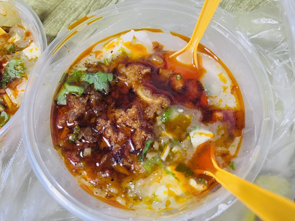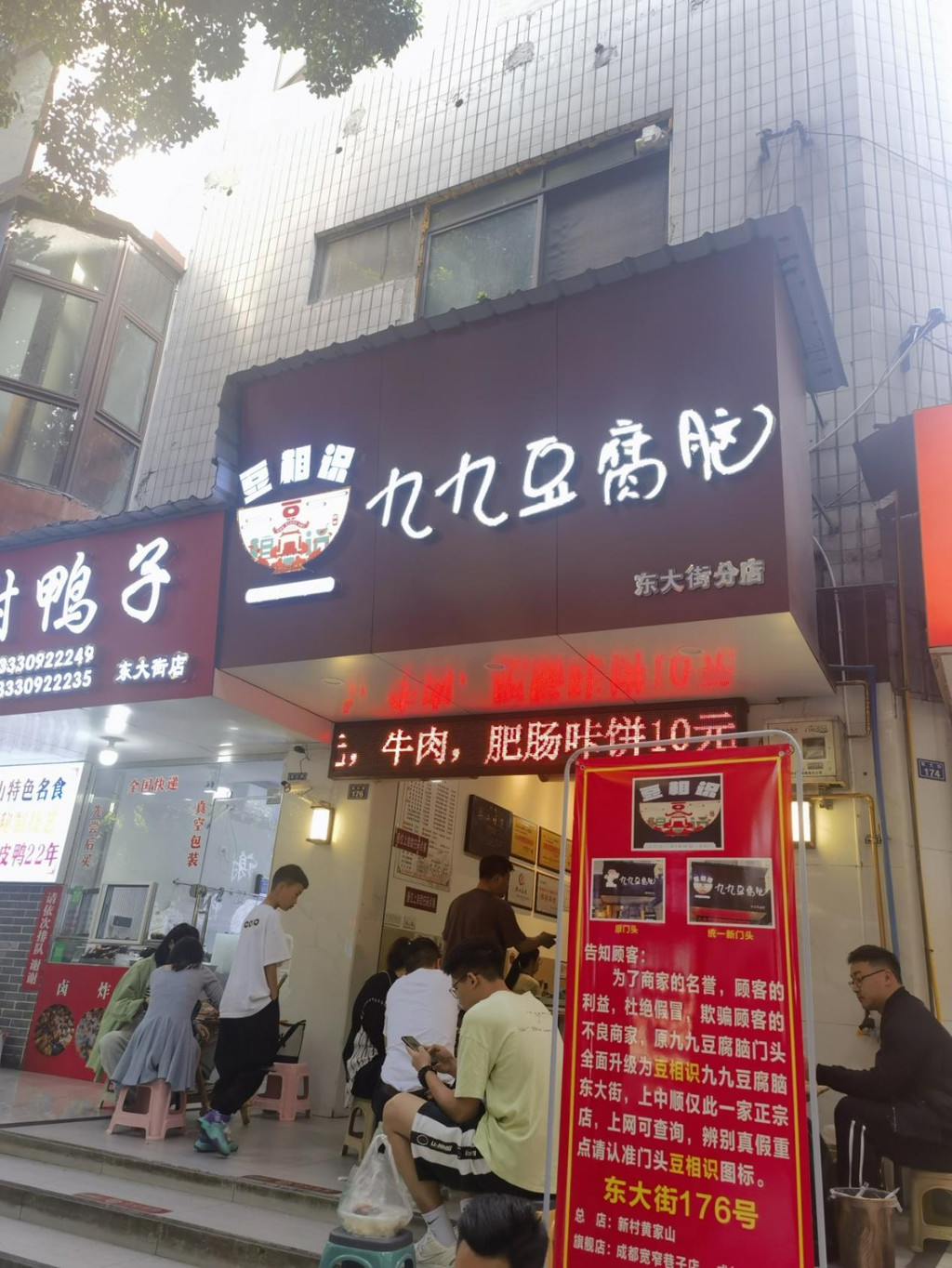 说回豆腐脑,这里的豆腐脑和我们本地的做法截然不同。这里的豆腐脑里面加的东西比较多。我很喜欢吃。听老板说,其实里面是加了芡粉和豆腐的。我们北方好像全部都是豆腐。我们是去吃的九九豆腐脑,是本地很有名的店铺了。他们家有牛肉豆腐脑,我觉得味道不错,是我比较推荐的。店里面的卡饼也不错。饼里面夹的是肥肠。