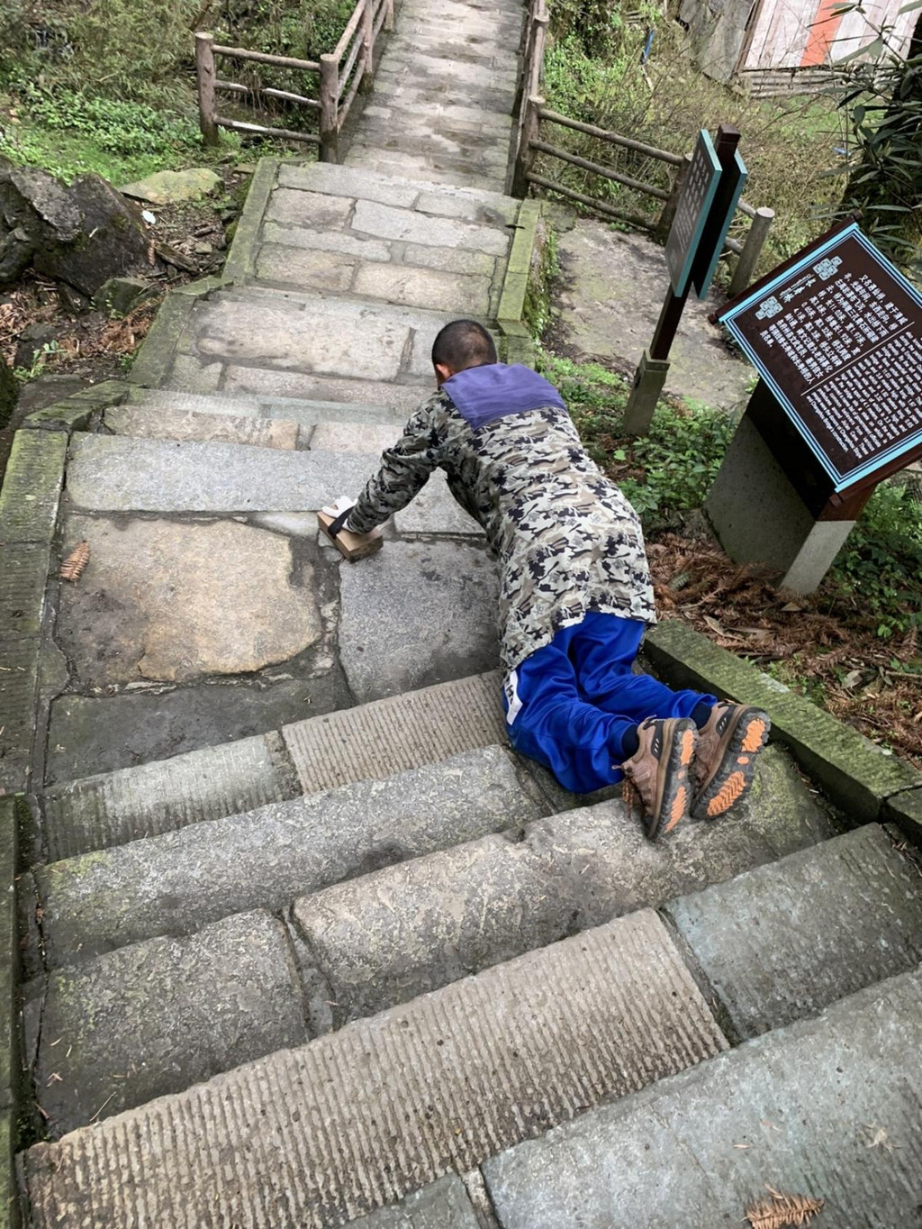 我在走楼梯的时候,特别担心爸妈会滑倒。结果他们比我还有经验呢。
