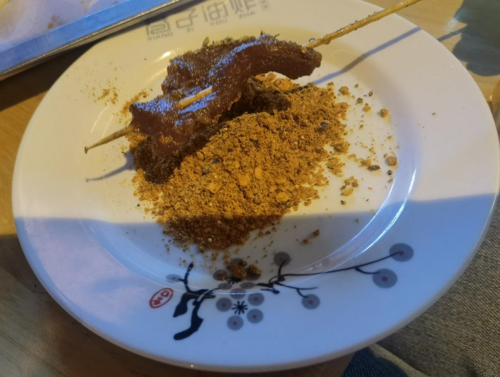 巷子油炸里面也是各种炸串吃第一口的时候就觉得很喜欢了。他们用的辣椒面并不是特别辣,算是很适中吧。店里面的牛肉叶很好吃。另外,我们还选了一些蔬菜,比如说四季豆,莴笋什么的,反正都没有踩雷。唯一一个我不习惯的事折耳根。好像川渝人都很喜欢吃看,但我实在是无福消受了。