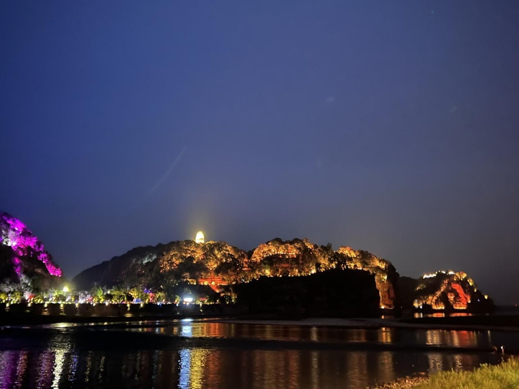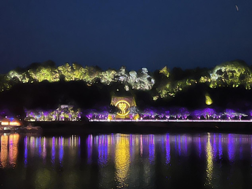 吃完饭天黑了,我们在江边走走,远处就是乐山大佛,感觉白天采光要好些,看得更清楚些。白天看到的大佛是很清晰的哦。因为次日我们就安排了乐山大佛一日游,当天就没有执拗地去看乐山大佛。