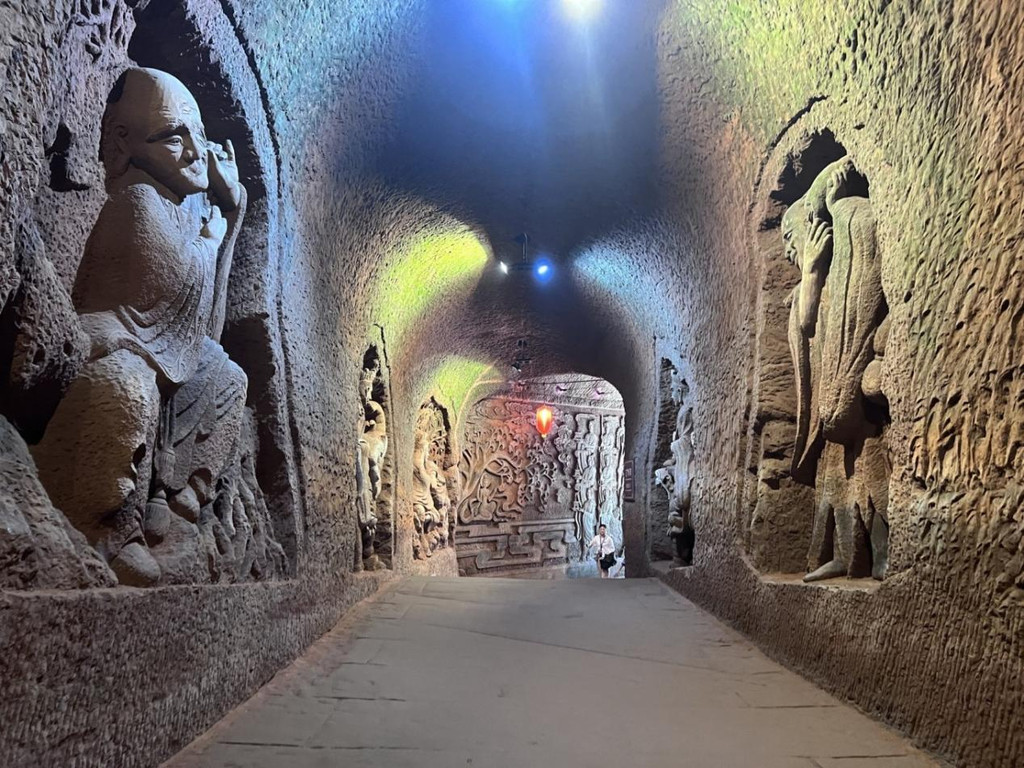 九点过就坐完船了,临时决定再去东方佛都(80RMB/人),来都来就去去吧。这个景点其实就在大佛的背。走到里面,到处都是很神秘的感觉。这里确实有很多佛像。
