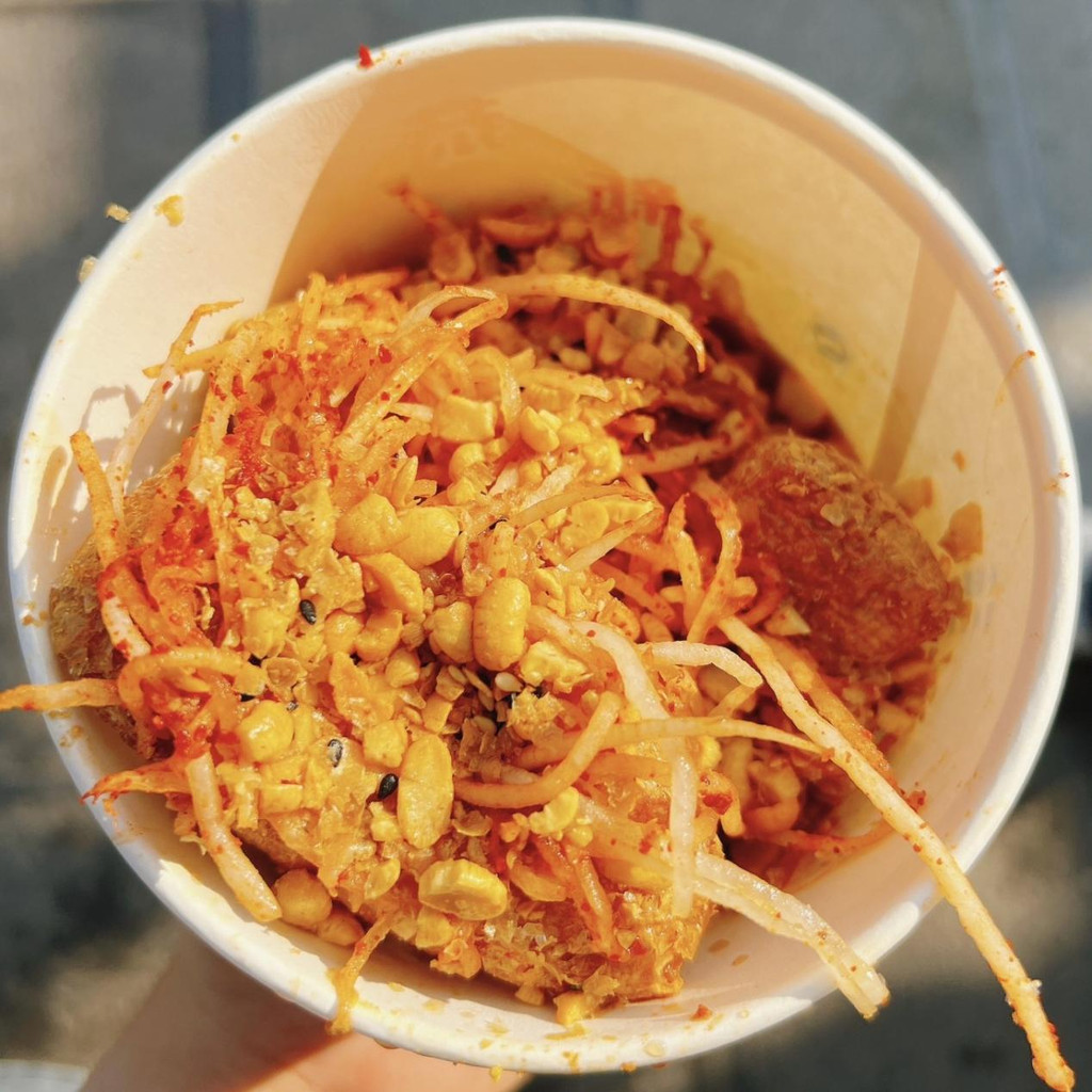 在美食节入口这有一家烧烤店:棣爸油炸。为什么火?因为是王鹤棣爸爸开的,所以好多他的粉丝前来打卡 。我对于这种网红打卡地十分不喜欢,就只能是路过了。