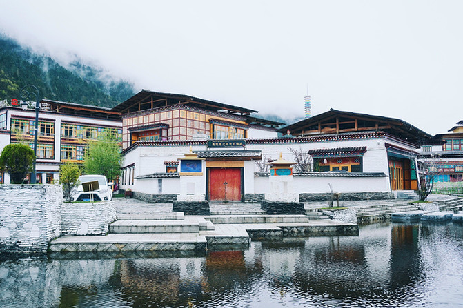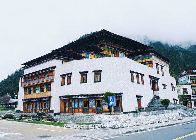 进入鲁朗小镇,这是一个充满设计感的小镇,是一座座各具建筑特色的藏式房子,与雪域高原壮丽的自然景观浑然一体,给人一种神奇、古朴之美感,是这里一道独特的风景。