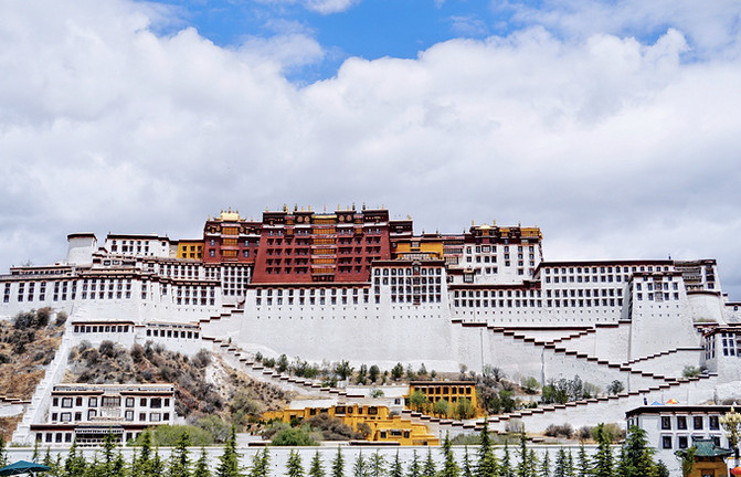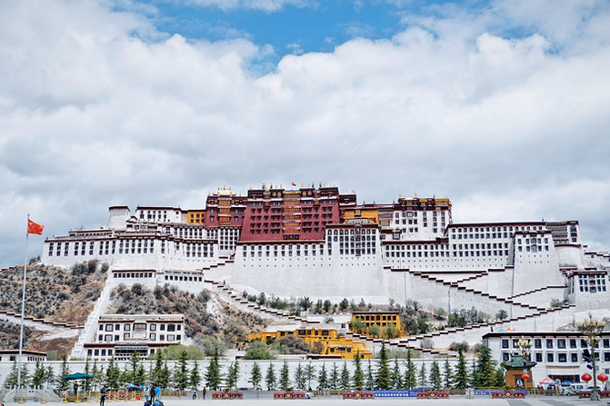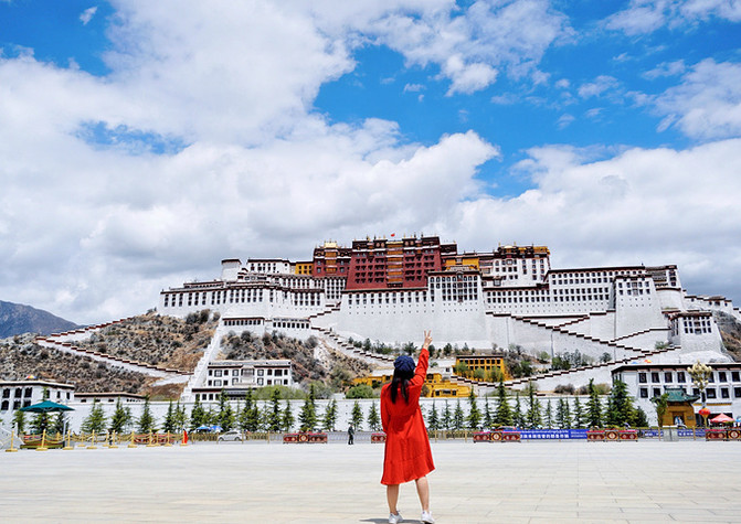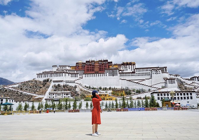 神奇又伟大的布达拉宫,在蓝天白云下特别耀眼。