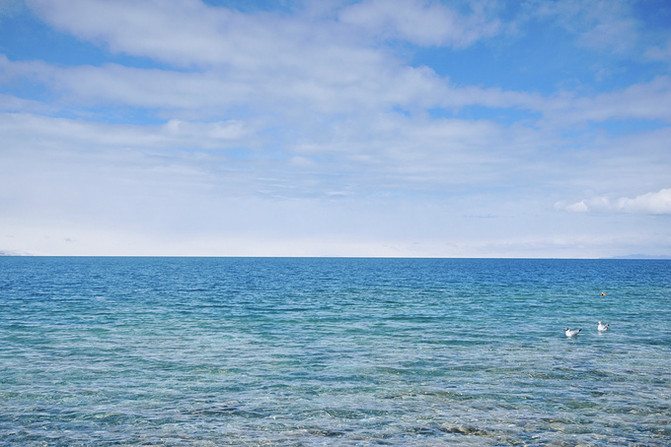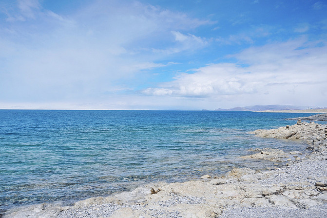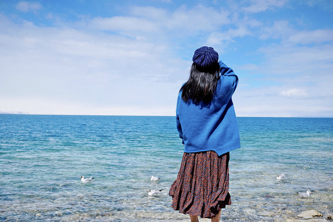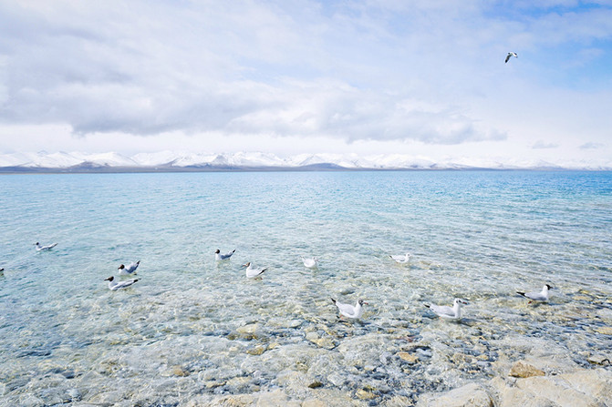 站在湖边,踩着湖边的碎石,看着眼前平静的湖面,海鸥在湖上飞翔的欢快和自由,微风拂面,吹过苍山、碧空与湖面,心中所有的烦恼都消失不见,圣湖化解了人间一切烦忧。