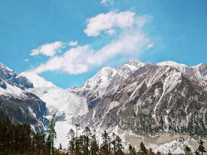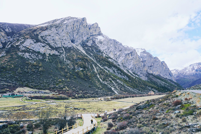 一大早从成都出发,中午便到达行程的第一站海螺沟,在磨西古镇吃完午饭后我们便购票进去景区了。坐着观光车沿着盘山公路而上,来到3号营地的干河坝。
