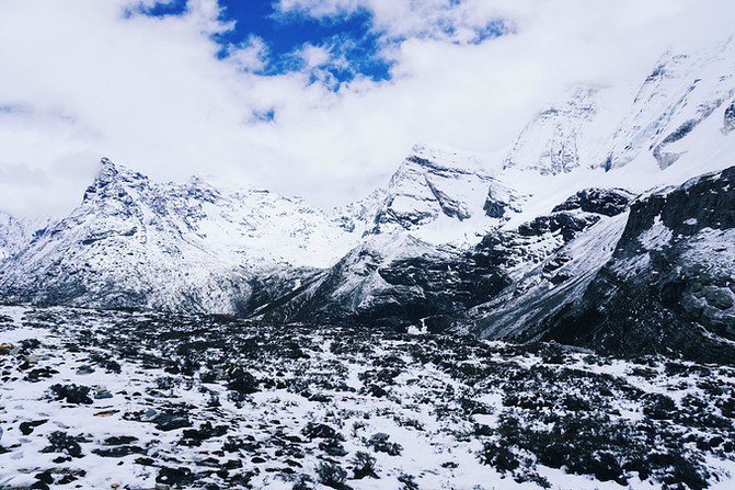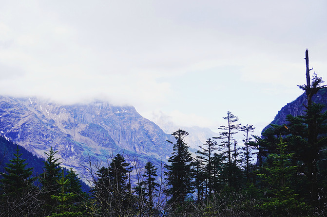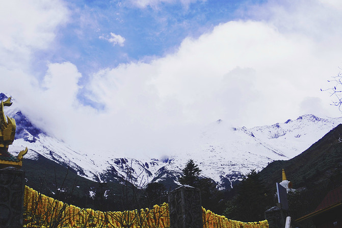 在海螺沟等待云雾散开的那一刻,雪山就在眼前。
