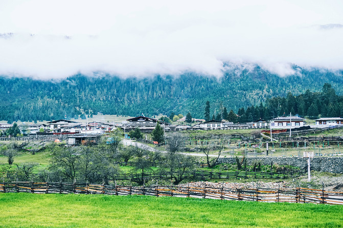 虽然只是停留短短的两个小时,但已经足以让我感受到鲁朗是一个舒适、充满幸福感的小镇。一年四季被雪山和林海环绕,放眼远眺,云雾里的小村是期待里的风景,雪山与云雾依偎在远方,来到这里,感觉整个世界都安静下来。看着眼前的风景,自己也成为风景中的一点,你在看风景,看风景的人也在远处看你。
