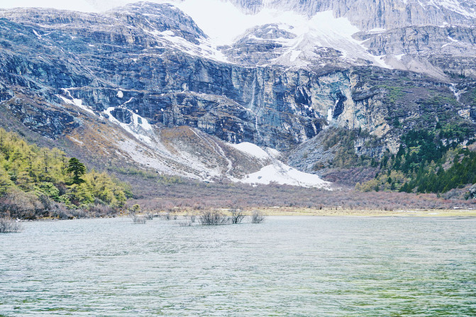 央迈勇山脚下,是那一汪清莹的牛奶海,四周雪山环绕,湖水碧蓝。海拔4600米的牛奶海,就像亚丁的一颗眼泪,又像群峰的一块宝石。湖泊中心是清澈的碧蓝色,往外是浅绿色,到岸边的透明...微风吹过水面,阳光透过云层,湖泊变幻色彩,既浪漫又深沉。