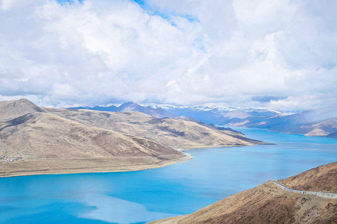 蓝天白云,雪山湖泊,纯粹的蓝色是一种静谧的美,特别的梦幻。看着眼前的这一抹蓝,安静的流淌着,安静得让人忘记了呼吸。有着千百种美的羊湖,无论哪一种美都让人无法抗拒。