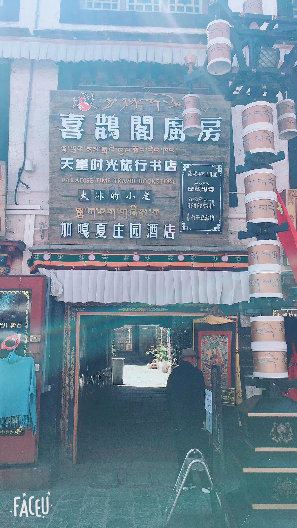 喜鹊阁旁边有大冰的小屋,这家小屋是和一家天堂时光旅行书店一起的,院子里摆满了书和各式各样的纪念品,还有一架钢琴,但是没有驻唱歌手。在大昭寺午后暖暖的阳光里,坐在小屋里手里翻着大冰的《你坏》,体会着大冰留在拉萨的青春。在旅途疲惫时,坐下来享受这静谧的氛围,难得可以静下心来好好看书,十分美好。