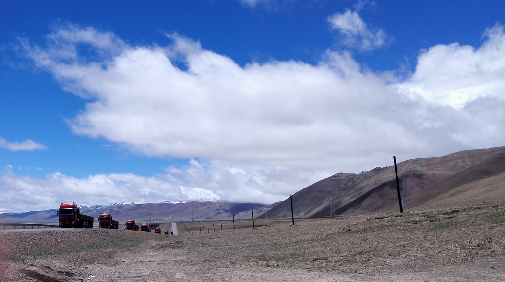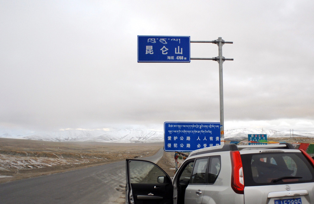 第四天计划去察尔汗盐湖,由于下大雨未能成行,这里是中国最大的盐湖,有三千多工人,还有一个盐湖博物馆,下次再去吧。第五天凌晨三点出发,一片漆黑,打开奇骏车顶大灯,两道光柱划破夜空,沿着空无一车的公路向拉萨前进。这么早出发是为了当天赶到拉萨,备课时有资深驴友友情提示,尽量不在那曲停留,高原反应会影响全程的精神状态。那曲海拔4500米左右,一般人都会出现高原反应,过夜则会更加严重,如果在那曲出现较严重高反,就不要自驾去阿里了,阿里除路途艰辛外,高反考验亦非常人能够承受,连续几天在四千米以上高原行车要有足够思想准备。从格尔木到拉萨将近1200公里,按照限速估计至少要20个小时。四点到达南山口交警检查站,办理路条,锁定到下一个检查站的时间,475公里限7小时以上到达。上路才知道,路面状态很好而且车较少,不知不觉就是一百多公里的时速,好在路上风景绝好,不时停车观看,用不到专门等候,在检查站前几公里常常可见一些停在路边的车在等时间。超速的处罚是非常严厉的,十分八分罚你在检查站等候,超时更多则罚款最多达二千元。限速都在50-70公里范围,但是不测速,以点到点的时间来计算。