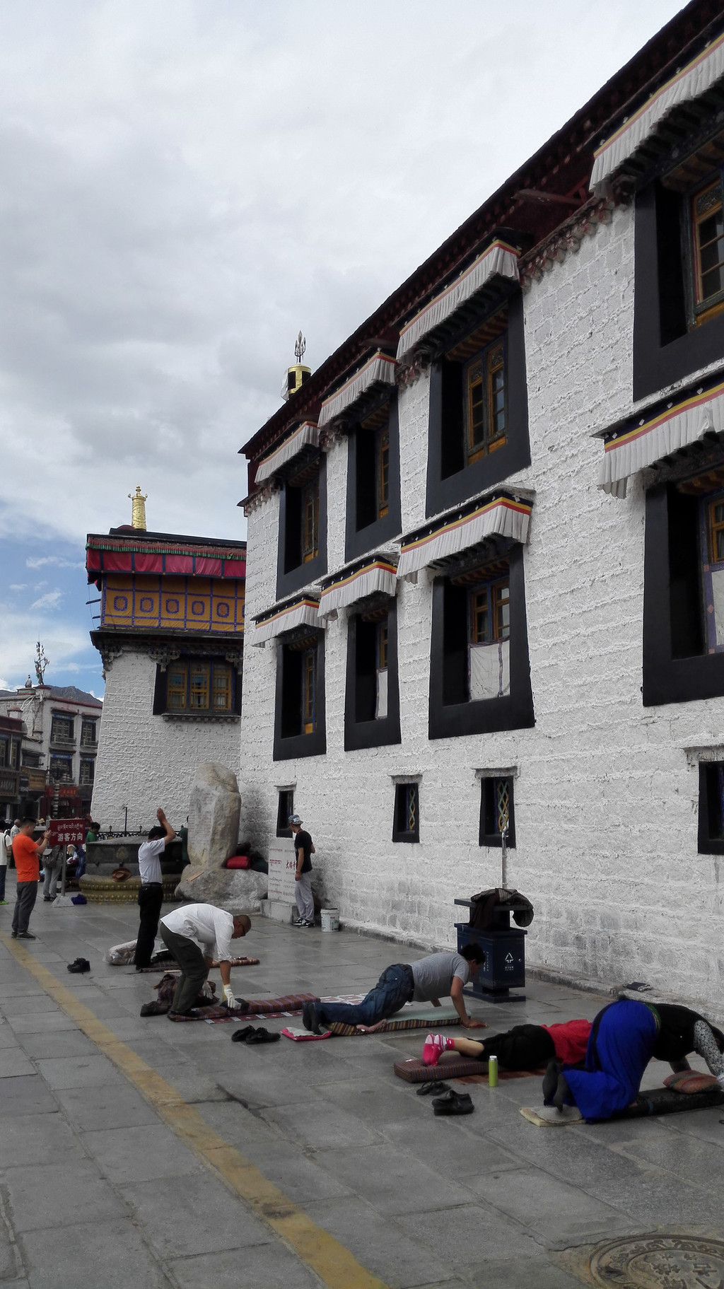第六天早上想多睡一会儿,但是头疼不困,高反有但尚能忍受,后来证明坚持一下就过去了。上午去布达拉宫,下午去大昭寺和八廓街。在八廓街的藏式茶馆喝奶茶,一暖瓶大约500毫升3块钱,一个人喝了两瓶,好喝实惠并且有缓解高反的作用,出了茶馆感觉神清气爽。