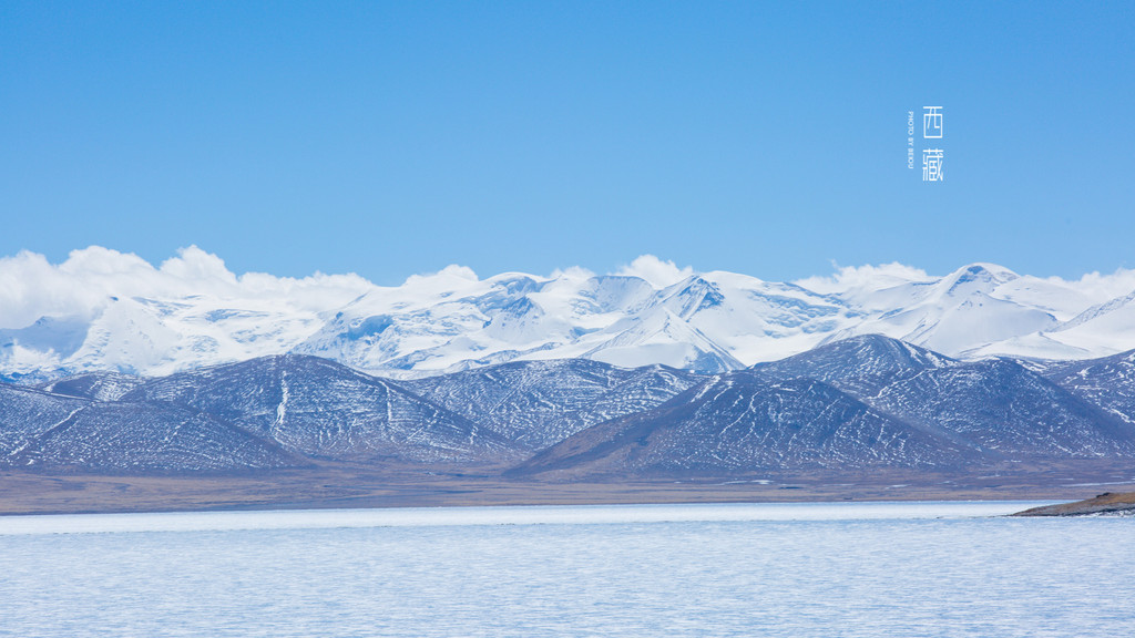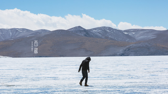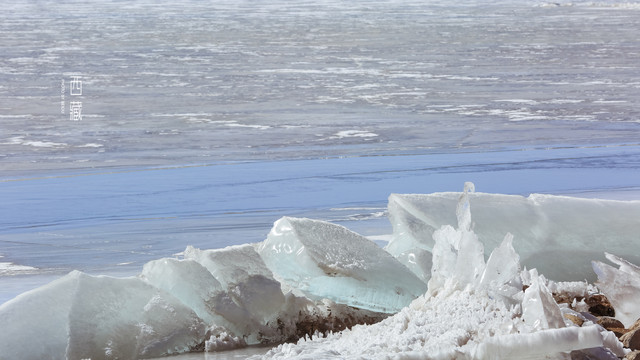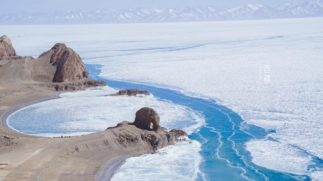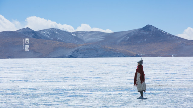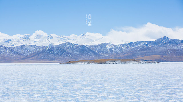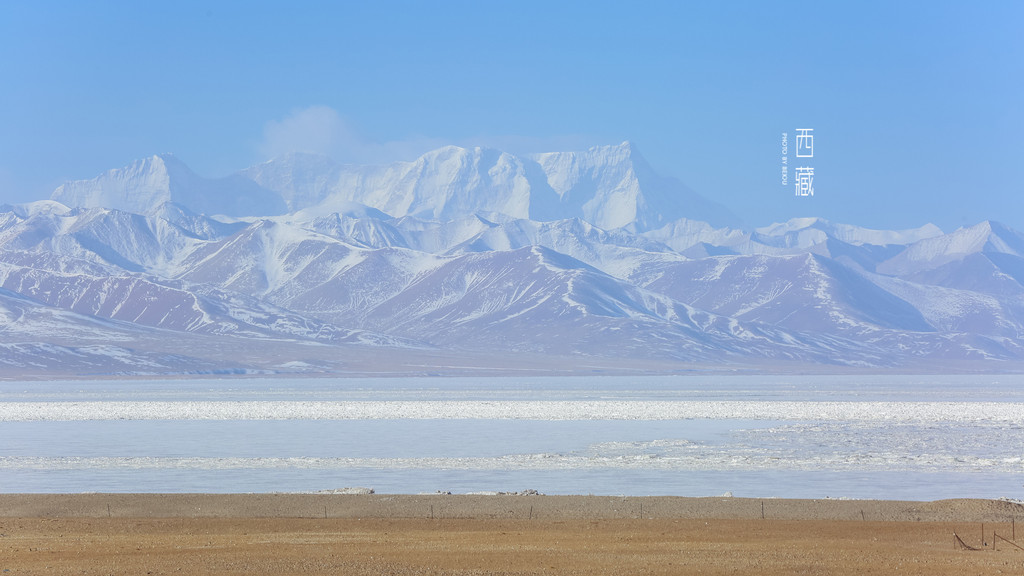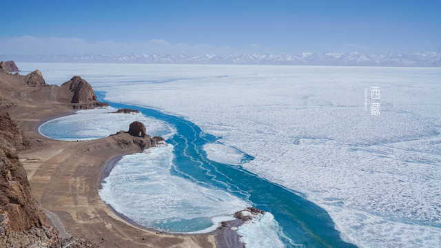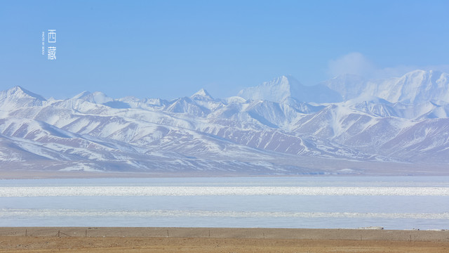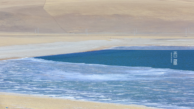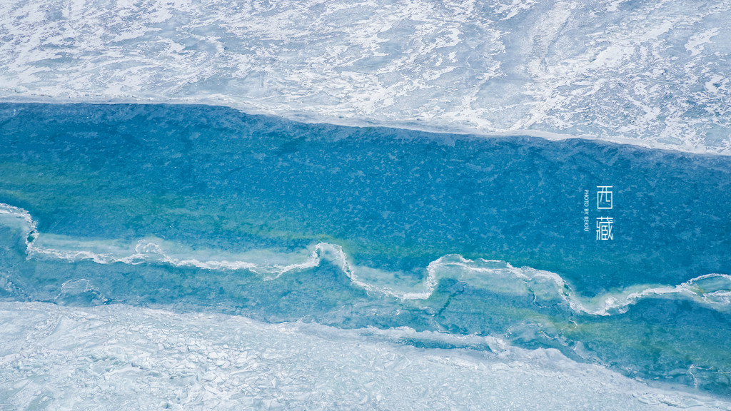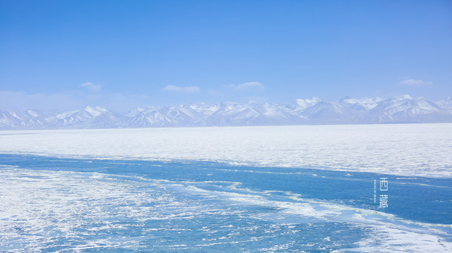 冬天的普莫雍措已经结冰了,冰面上覆盖着薄薄的一层雪,冰雪的纹路也展现出来了。