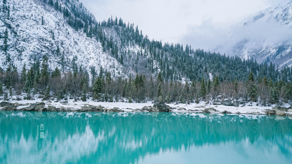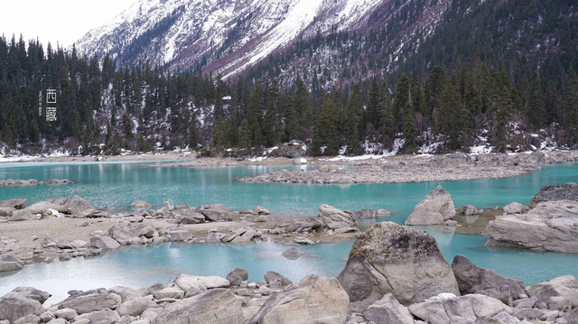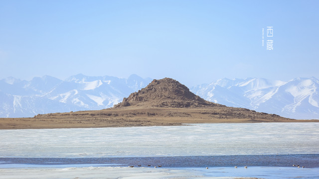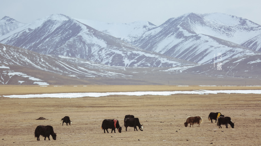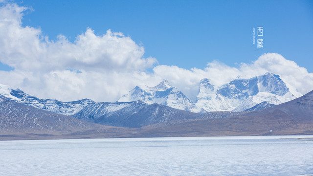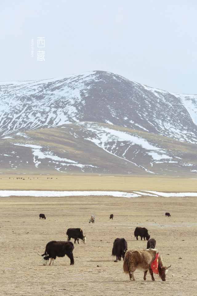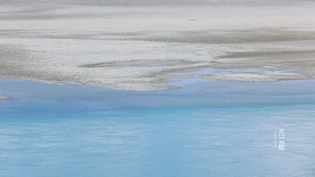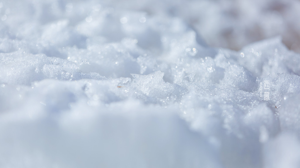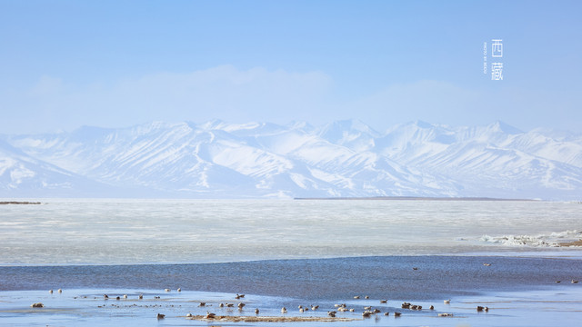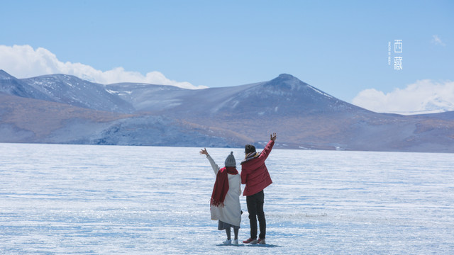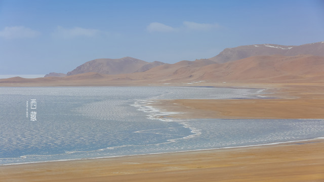 冬天的普莫雍措已经结冰了,冰面上覆盖着薄薄的一层雪,冰雪的纹路也展现出来了。