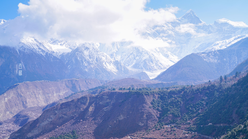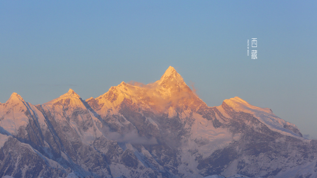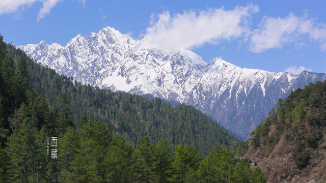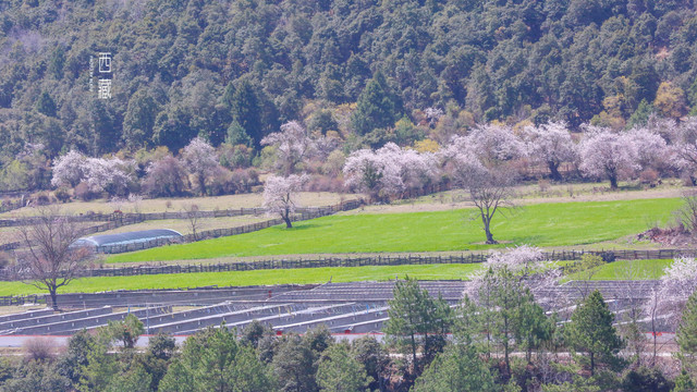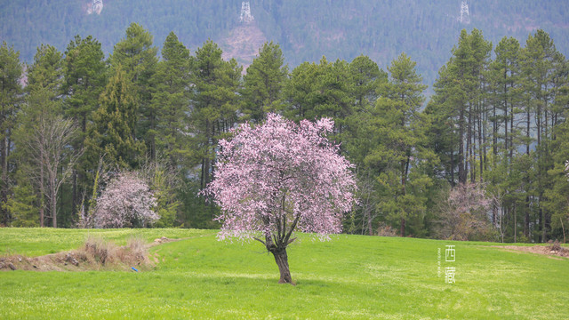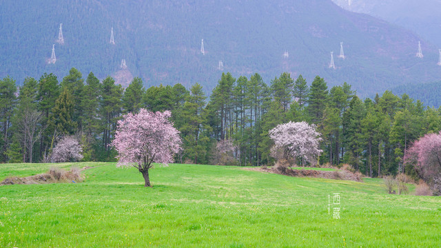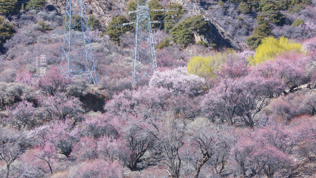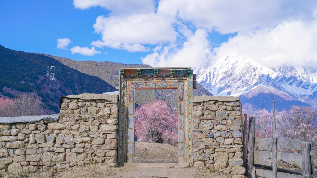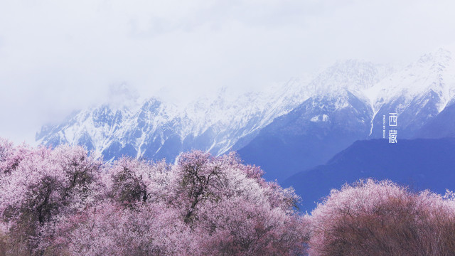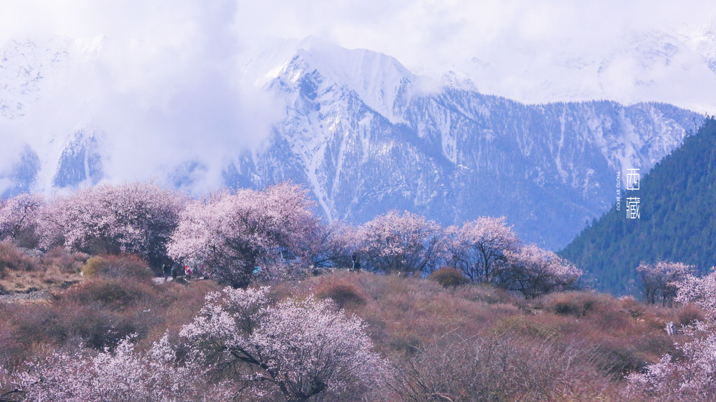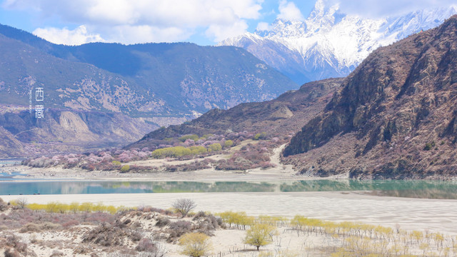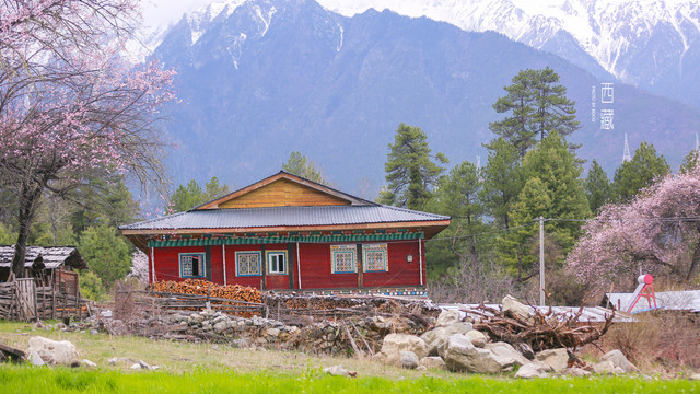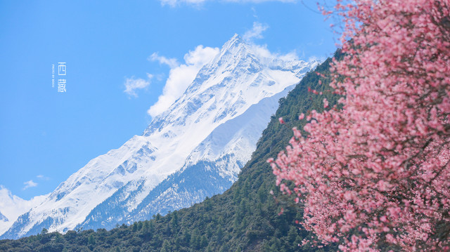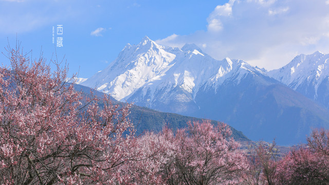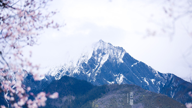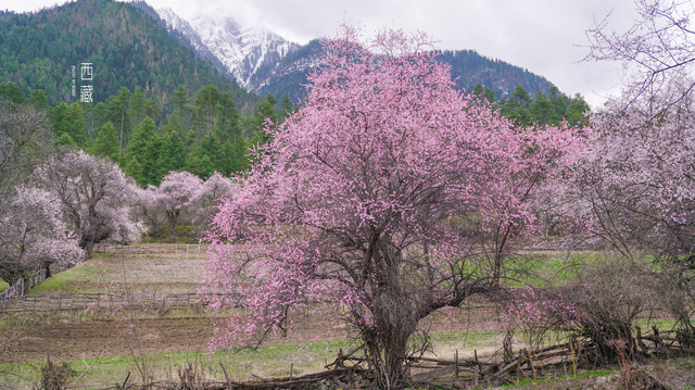 雪山,山林,桃花,不同的色彩组成的这张照片,怎么看怎么喜欢。