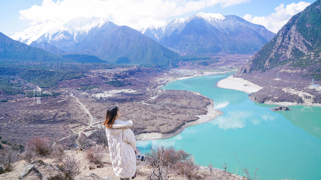 沿路走会有几个观景台让游客游览尼洋河谷的风光。即使没有无人机,也能从制高点看到。只是这里的游客较多,停车不太方便,也没再过多的停留。春季的雅鲁藏布江,不似平时的野性,这时的她是柔美的,平静的。让人能放松下来,陶醉在这美景之中。