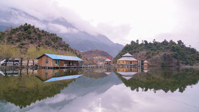 许木鱼庄就是建造在池塘里的小木屋。照片中的那个小木屋是可以提供给游客的。不过许木鱼庄太火爆了,我们提前了很久定房间刚好订到。后来因为老板记错了订房时间,导致卖多了两间房,随后把我们安排在了邻居的藏式民居里。小木屋因为在水上比较潮湿,所以后面的安排我们也无所谓了。