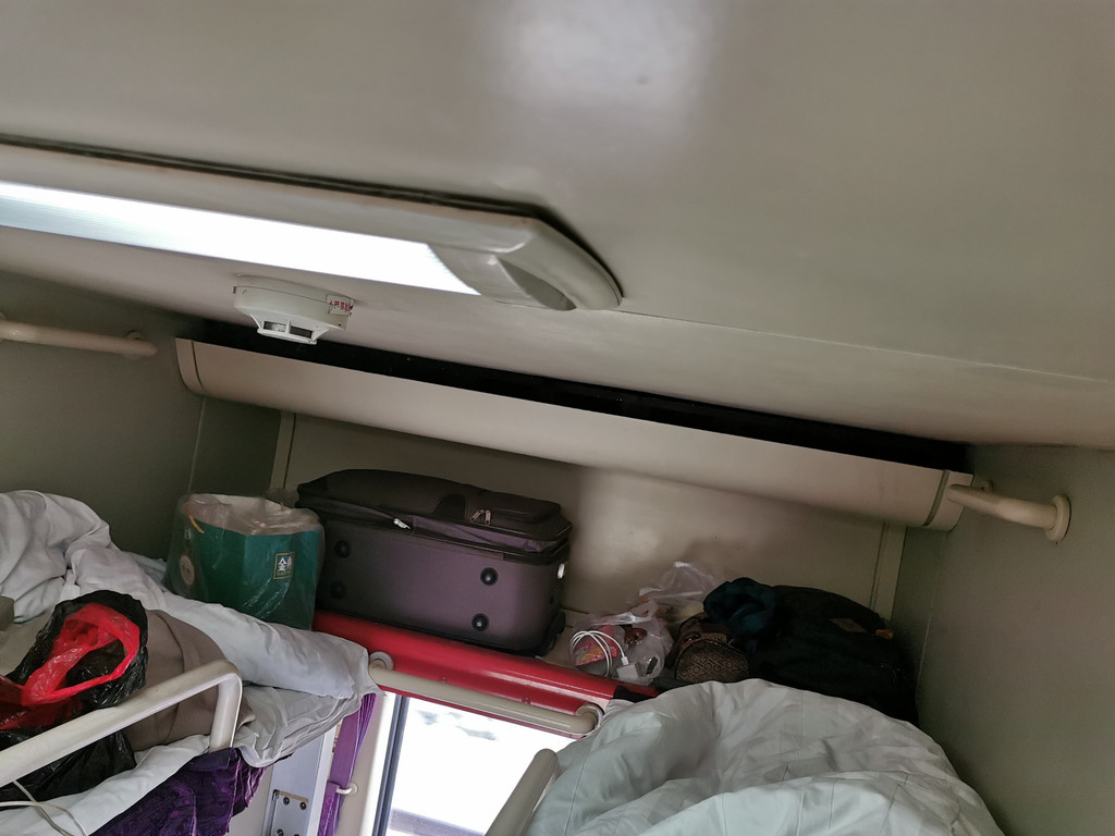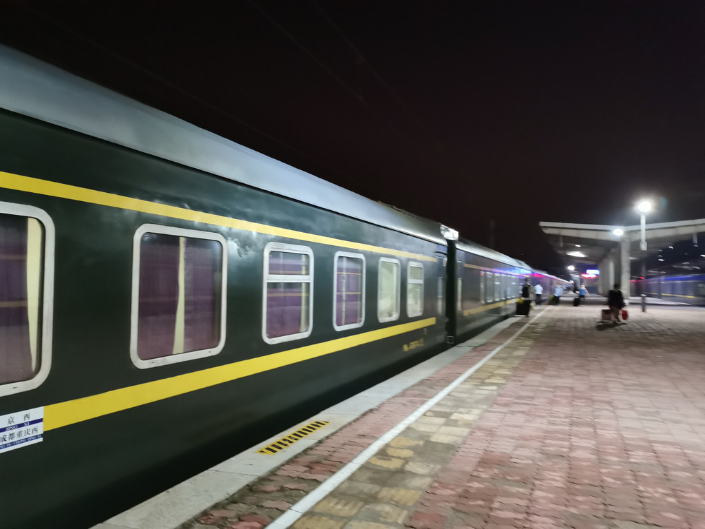 旅客们背着大包小包走到站台时,墨绿色的Z21像一支整装待发的部队已经等候在橘黄色的灯光里,腰线上“北京西—拉萨”的白色铭牌仿佛近卫军的臂章显示出它的与众不同,想到一觉醒来这支队伍就挺近到茫茫大漠而它的目的地将是雪域高原,不觉感到夏夜的风也开始有了一丝凉意。上车找到自己的铺位,安置好背包行李,向还没有休息的同车旅客颔首致意,不久列车就关闭了顶灯进入夜间运行模式,38个小时的列车生活开始了。