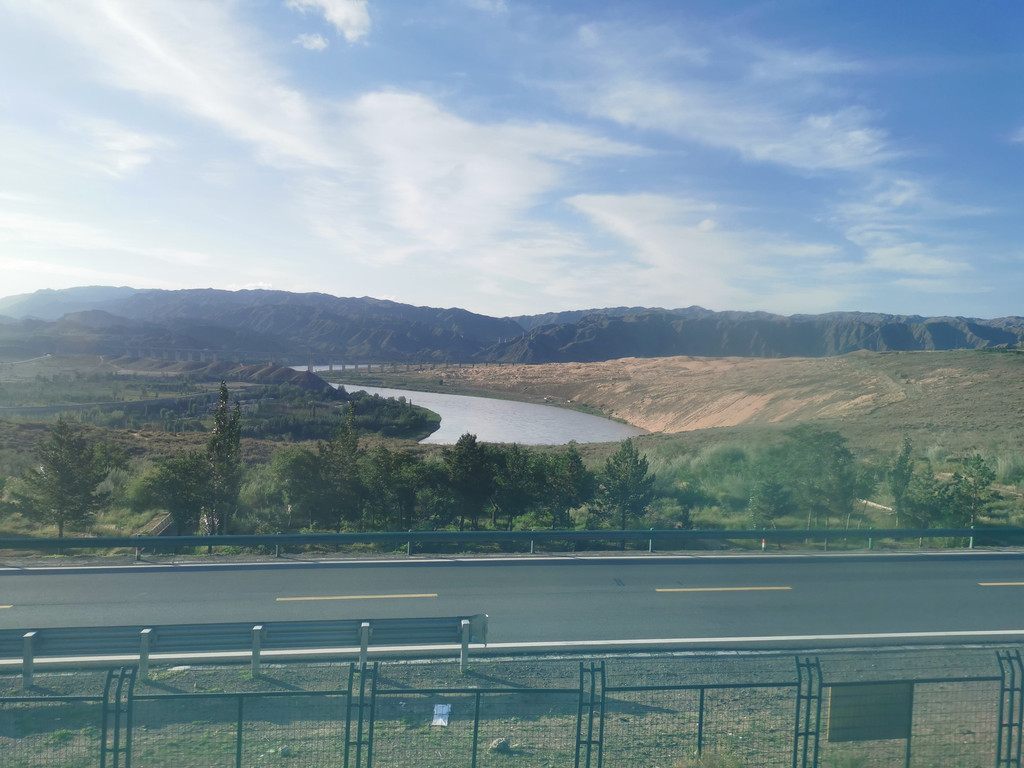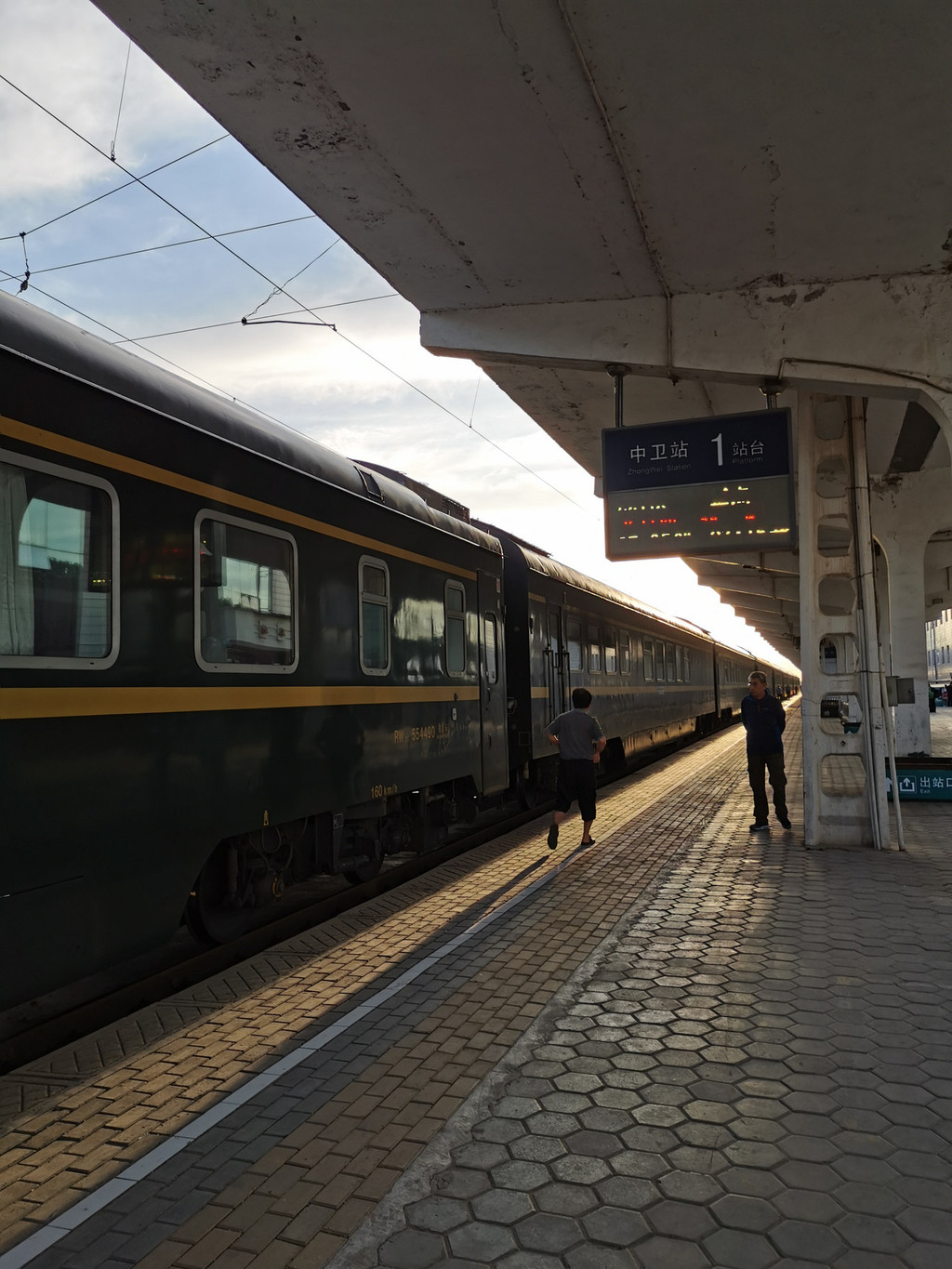 21日早晨5点刚过,大家纷纷从睡梦中醒来,如果忽略对面上铺那没有节奏的呼噜声,总的来说列车上的第一晚睡的还算可以。窗外已经呈现与家乡不同的景色,树木稀少视野辽阔了很多,7点列车即将到达出发以来的第三个车站——中卫。2015年10月和朋友从银川出发自驾西北曾到过中卫沙坡头景区,那次印象最深的是在沙坡头乘坐滑索横跨黄河,正思索间,一帧似曾相识的画面一闪而过,原来列车正好经过沙坡头景区的大门,接下来是黄河一处大转弯,真是想不到列车正好经过沙坡头!列车在中卫停车11分钟,大家纷纷下车舒展一下身子骨,恰巧对面上铺的“呼噜哥”拎着行李从中卫下车,大家的心里暗暗生出一丝喜悦,伸胳膊蹬腿更加带劲儿,同时也在默默祈祷再上来的旅伴晚上能够安静些。