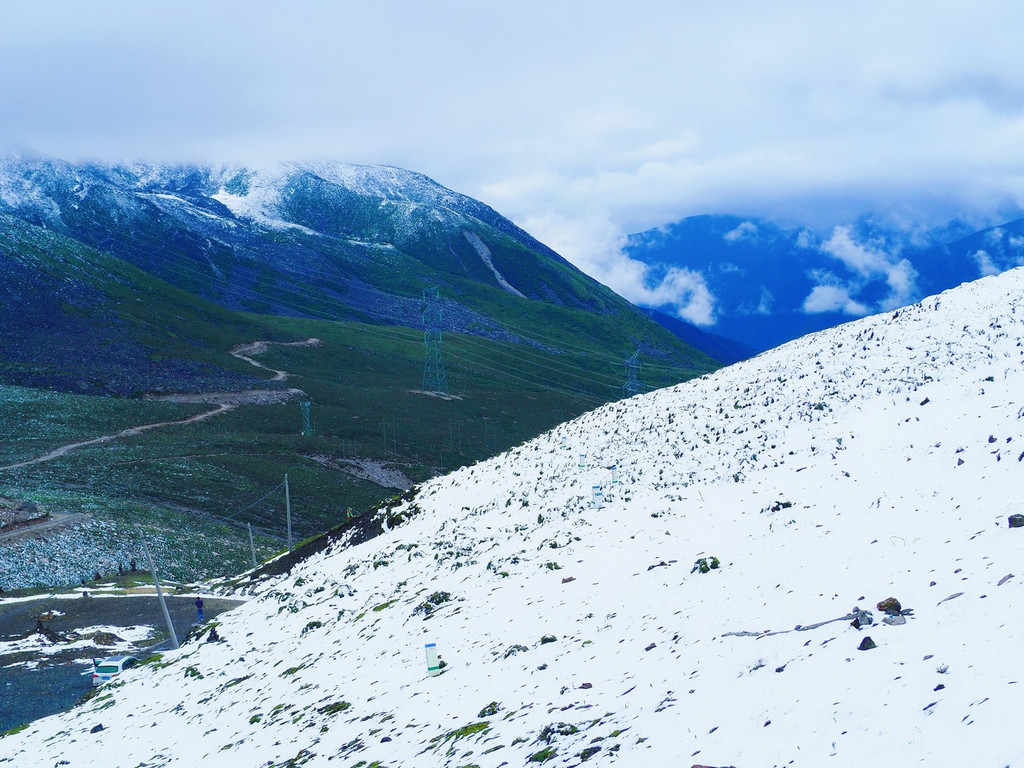 折多山最高峰海拔4962米,垭口海拔4298米,与 康定 市的海拔落差达1800米。沿着蜿蜒盘旋的公路驱车驶入折多山垭口,立秋之际, 成都 燥热不堪,折多山却寒风凌凌,还下起了大雪,大伙都纷纷换上了冬装。