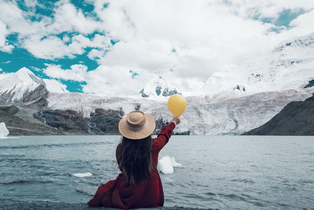 风起云涌的午后,圣象天门被一块巨大的乌云,分成了两个世界,一半清透明净,一半暗灰深沉,各有千秋。随着风云的流动,整个湖面都亮了起来,阳光四射,连绵的雪山也悄悄地探出了头。此时此刻,彷佛整个世界都停滞了,这眼前的美景足以令人忘记了时光流逝。