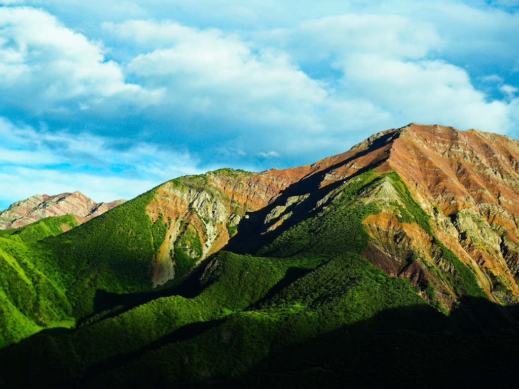 奇丽的孜珠山,一年四季,景色万千。其中,最美的当属秋冬时节。秋日暖阳下,芳草萋萋的高山草甸上,野花正竞相开放。透过孜珠山的“宝镜”,眺望远方。千沟万壑的藏东山头,从近至远,有青黄相接的青稞田,一直连绵着赤褐橙黄的丹霞山谷,就像是上帝打翻颜料盘,落地成了一幅和谐美妙的高原秋收山水油画。