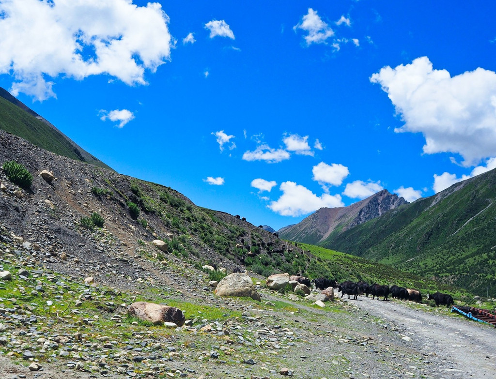 国道317途径地多为高原牧区,海拔更高,人烟稀少,景色更为原始。