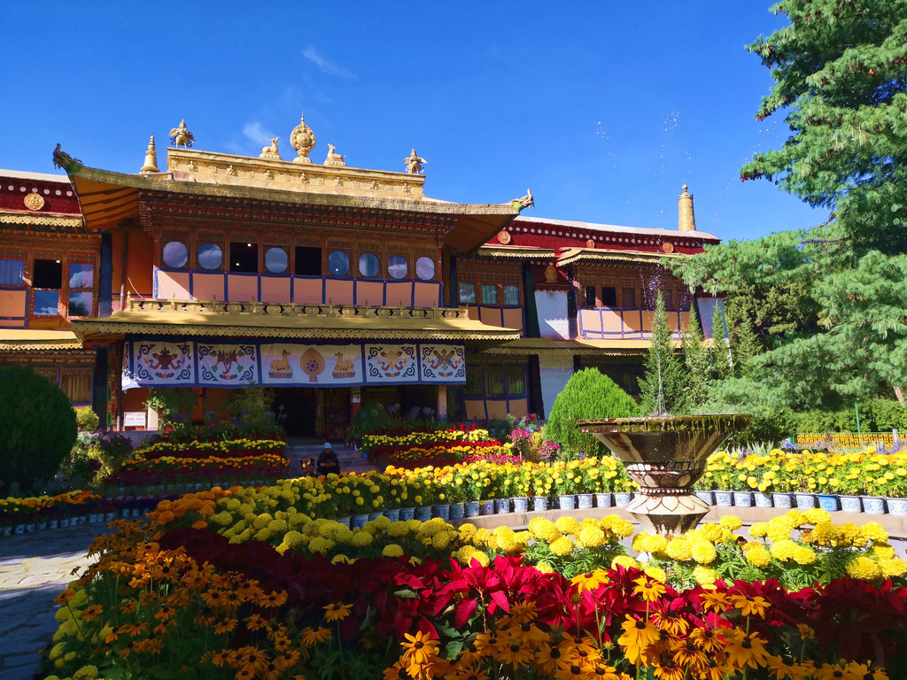 罗布林卡藏语意为“宝贝园林”,其实就是“皇家”园林啦~9月的拉萨,不是花季,只有稀稀拉拉几个地方有开花,还需要靠借位才能拍出花多的样子……哎,这座罗布林卡不能说是像一个普通公园吧,它简直就是一个普通的公园……几个“颇章”(也就是宫殿佛殿的意思)都没开,真的不知道80元门票参观个啥。总结:走个半死,偶有景致,难掩无趣。