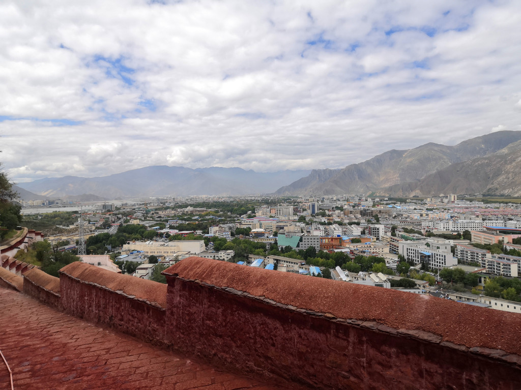 参观完毕,下山过程中我们有充裕的时间拍照。各种照片安排~俯瞰拉萨城的景观还是不错的~只可惜天气比较阴。西藏的天气就是这样,早上阴沉沉,下午3,4点才开始艳阳高照,蓝天白云才舍得出现。